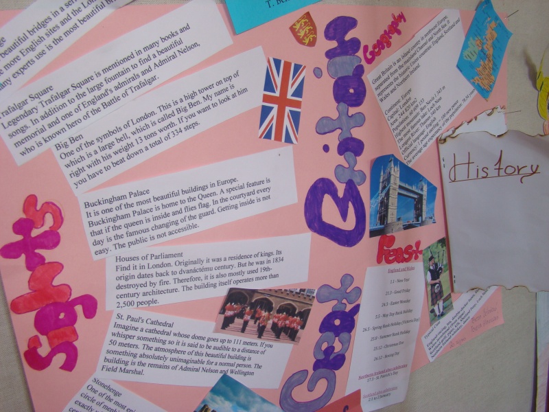 Na přelomu října a listopadu proběhla na naší škole soutěž s názvem ENGLISH SPEAKING COUNTRIES, které se mohli zúčastnit žáci 5.- 9.tříd. Soutěžilo se ve dvojicích a hlavním úkolem bylo zpracovat informace o některé z anglicky mluvících zemí světa. Žáci sbírali poznatky o kultuře, historii, politické situaci nebo známých osobnostech vybrané země. Z odevzdaných zpracovaných projektů byla nejlepší práce Marcely Bačkové a Anny Kráčalíkové (8. tř.), A dvě druhá místa pak obsadilo duo Kristýna Machů, Iveta Pomykalová (7. tř) a společně s nimi Tereza Hlavicová a Tereza Běloňová (8. tř.).