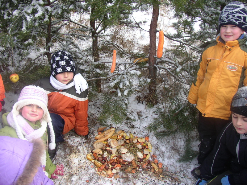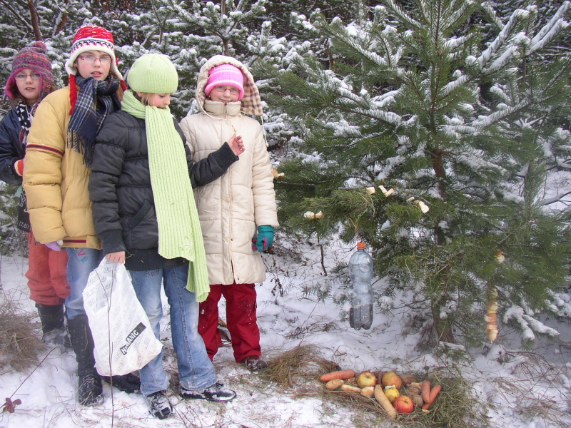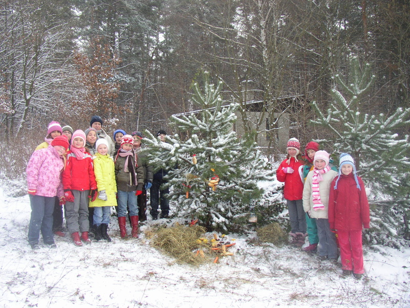 Včera napadl sníh a všude je krásně bílo ... Jako by tam nahoře věděli, že máme na dnešek naplánované tradiční zdobení stromků v lese. Naše společná vycházka 1. stupně tak dostala skutečně předvánoční atmosféru.