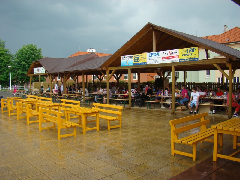 V rámci odpoledního programu byly naplánovány závodivé hry, překážky lanového centra, vystoupení šermířů a břišních tanečnic a projížďka koňským spřežením. Z důvodu nepříznivého počasí byl program zkrácen, proběhly závodivé hry, děti si vyzkoušely překážky lanového centra, proběhla ukázka břišních tanců. Ostatní atrakce musely být odvolány. I přesbouřku, která se nad areálem prohnala, se sešlo velké množství dětí a rodičů, kteří se bavili poslechem i tancem při diskotéce. V průběhu celého odpoledne probíhal tah dětské tomboly o řadu hodnotných cen. Žáci a vedení školy děkují výboru SRPŠ za organizaci a MAS Ploština za finanční pomoc.