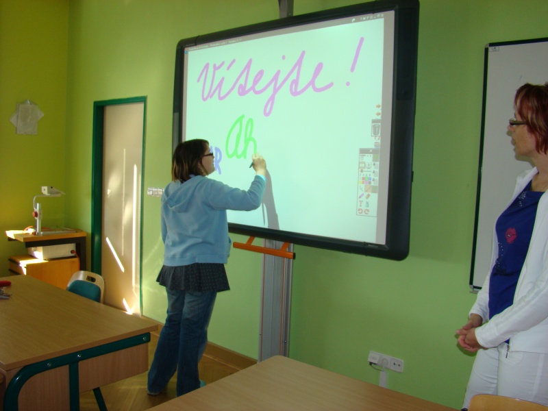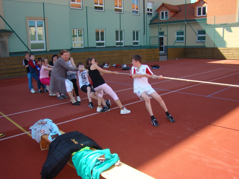 V rámci programu byla prohlídka školy, práce s interaktivní tabulí, cvičení v tělocvičně a na závěr přetahovaná a sportovní hry na venkovním hřišti.