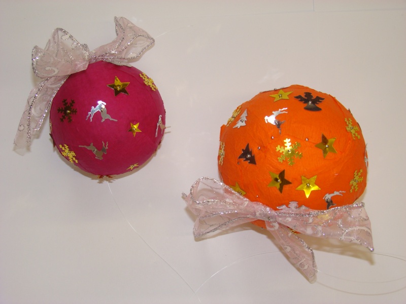 Třpytivá baňka (tuhé lepidlo, širší ozdobná stuha, polystyrenová koule o průměru 8 cm)
