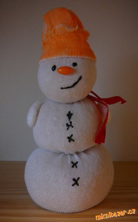 Sněhulák z ponožky (1/2 kg rýže a větší bílá opraná J ponožka)
