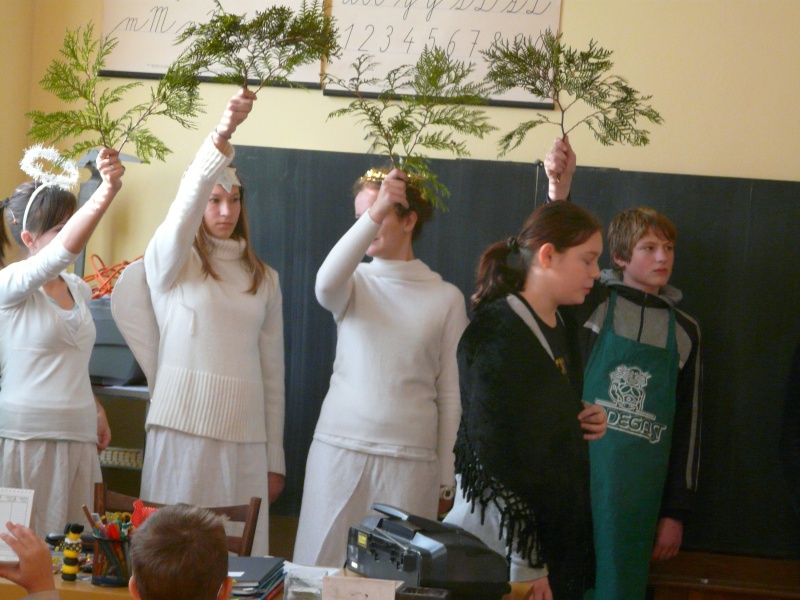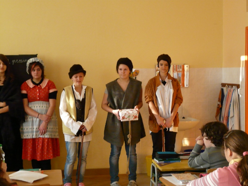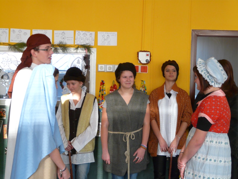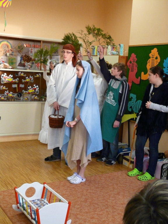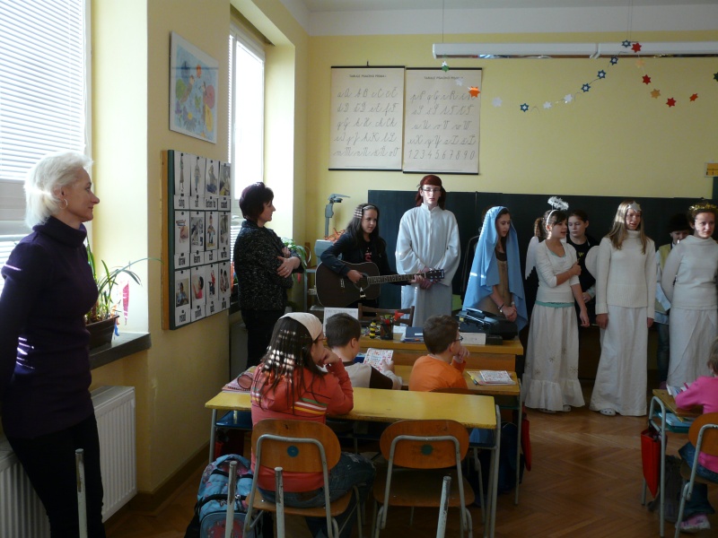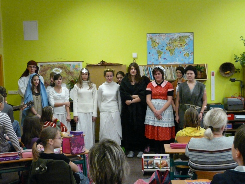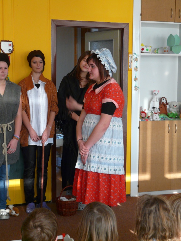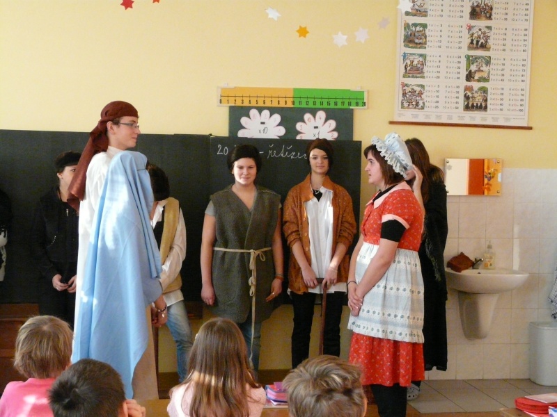 V hodinách literárního semináře jsme nacvičili krátkou divadelní scénku, která nám příjemně zkrátila předvánoční čas. Hráli jsme ji ve třídách na 1. stupni, v mateřské školce a také v místním kostele. Snad se vám naše divadélko líbilo.