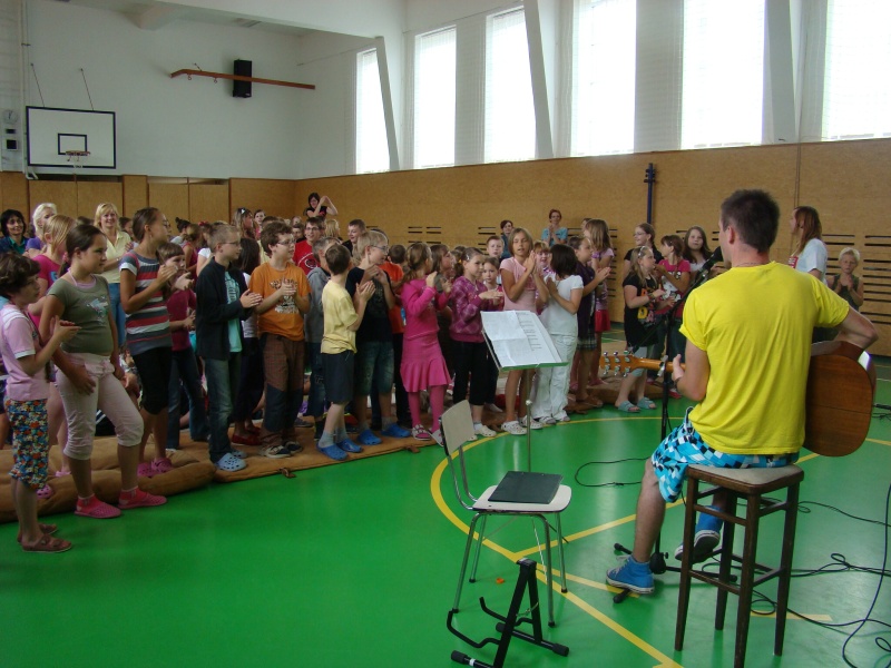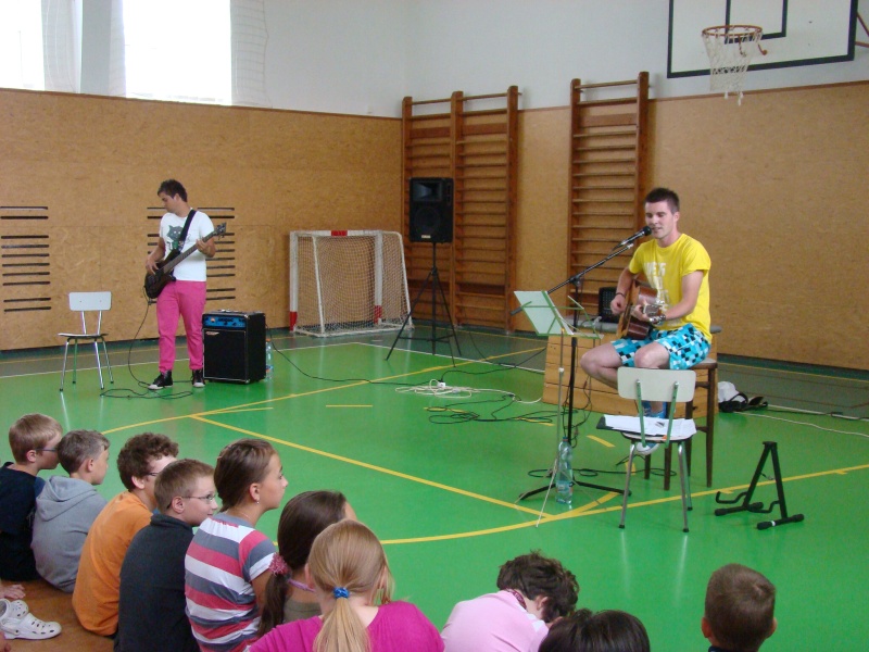 V úterý 26.6.2012 vystoupila na naší škole amatérská skupina z Vlachovic FireRice. Filip, Laďa a Ilona dokázali rozproudit publikum nejen z prvního stupně, ale v závěru i mírně apatického stupně druhého. Zahráli a zazpívali několik svých vlastních skladeb a také písně od známých populárních osobností. Myslím, že to bylo velmi pěkné vystoupení a budeme se na tyto mladé zpěváky opět těšit v příštím roce.