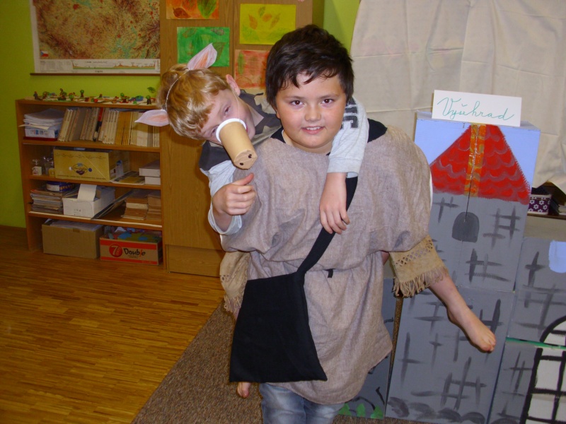 Velice nás zajímá, co se dělo v dávných dobách. V prvouce jsme si už zahráli na lovce mamutů, a teď jsme se rozhodli vytvořit Jiráskovy Staré pověsti české. Snad se nám to podařilo. Zvláště jsme se nasmáli Bivojovi s divokým kancem Ivánkem.