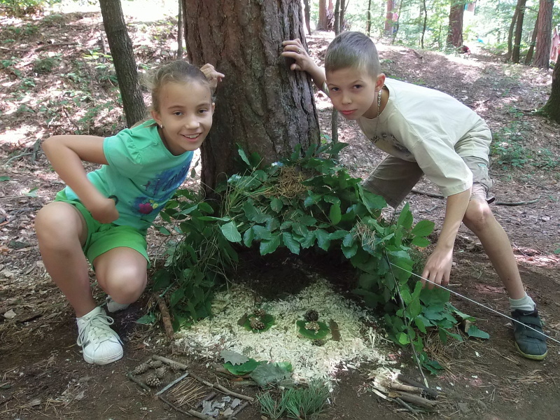 Díky krásnému počasí jsme první dvouhodinovku výtvarné výchovy strávili v lese. Stavěli jsme skřítkům domečky, osadili zahrádky a dokonce vyhloubili studnu ... Tak ať se jim dobře bydlí !
