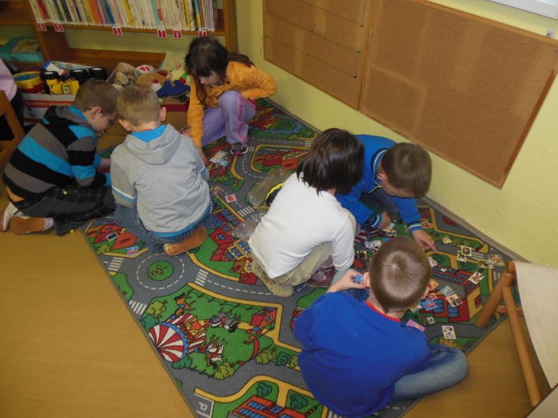 Připravila nám výstavku knížek pro nejmenší, ukázala nám,ve kterých regálech je najdeme a připravila pro nás i soutěže. Pomocí otázek jsme hádali postavy z pohádek a ve spoustě obrázků jsme hledali, které postavičky patří do stejné pohádky. Nakonec nás ještě odměnila malou sladkostí.