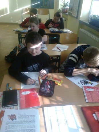 V pátek 4. 12. 2015 jsme se žáky 6. ročníku prožili čertovskou hodinu slohu. Všichni jsme se oblékli do černočervených barev, někteří si nasadili i ďábelské rohy, které byly umělé nebo vytvořené z vlastních kadeří. Hodinu jsme zahájili četbou pohádky od Boženy Němcové Čert a Káča, zodpověděli jsme si otázky a vyluštili tajenku. Potom si žáci vybarvili čerta, kterého následně popisovali. Žáci vzpomínali na všechna přísloví, rčení, pořekadla a pranostiky, která se vážou k čertům, ale také ke svatému Mikuláši a svaté Barboře. Hodina byla příliš krátká na to, abychom všechno stihli, ale prožili jsme velmi příjemnou výuku.