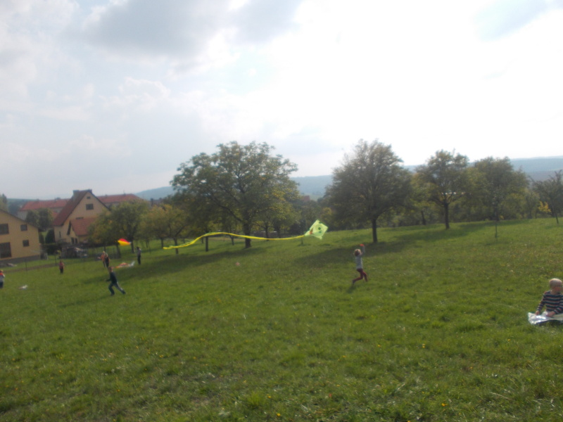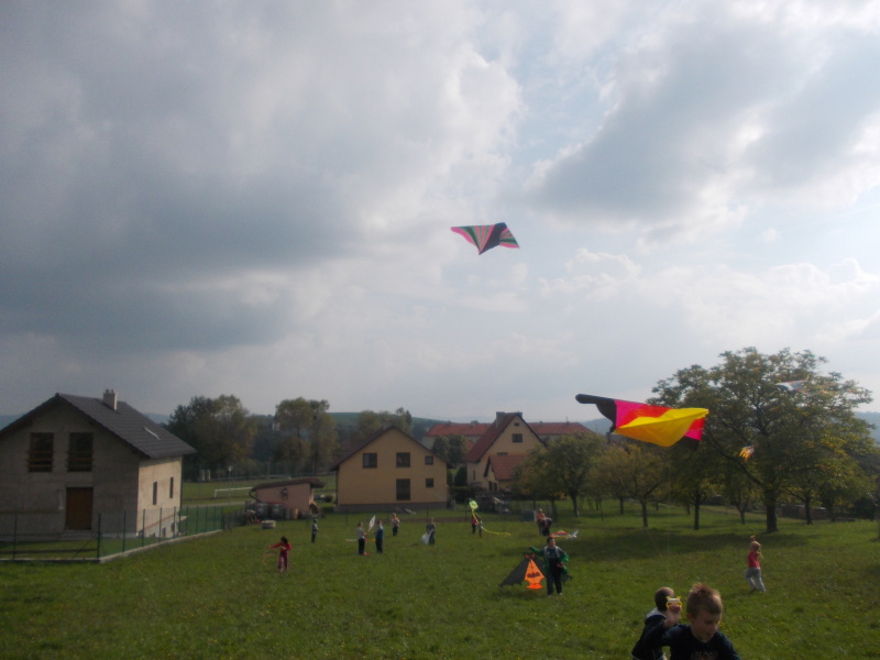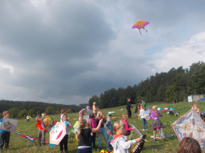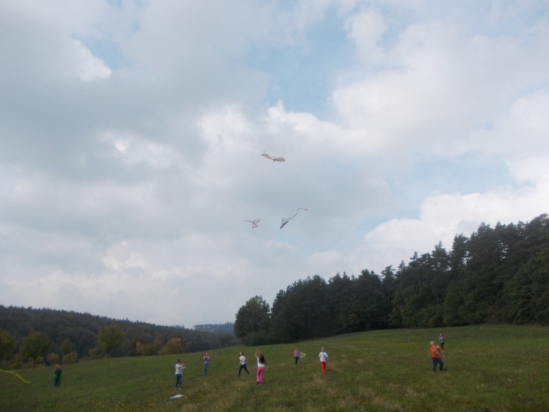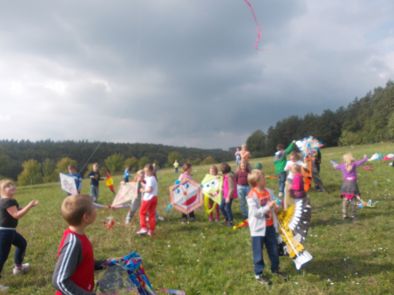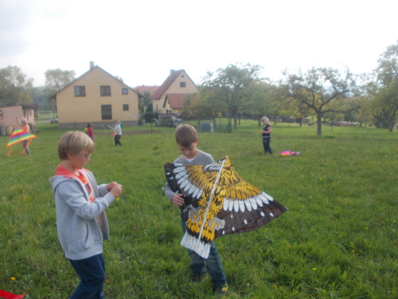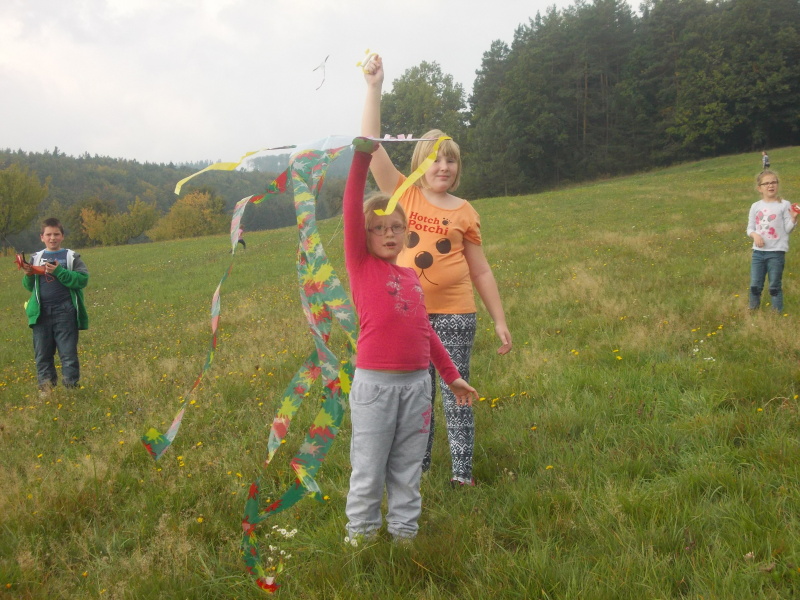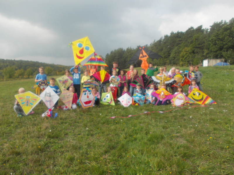 K podzimu neodmyslitelně patří pouštění draků. A proto se ve školní družině konala, jako každým rokem, DRUŽINOVÁ DRAKIÁDA. Sešli jsme se po vyučování v hojném počtu a vyrazili na kopec za školou. Počasí nám přálo, ale vítr foukal jen mírný. I přesto se nám podařilo vzlétnout s draky až do mraků J . Na konci drakiády byli odměněni všichni, kdo si dráčka vyrobili sami nebo s pomocí rodičů. Také byli vyhodnoceni nejvýše létající draci a všem ostatním byla rozdána sladká odměna. Drakiáda se nám vydařila a už teď se těšíme na tu příští J.