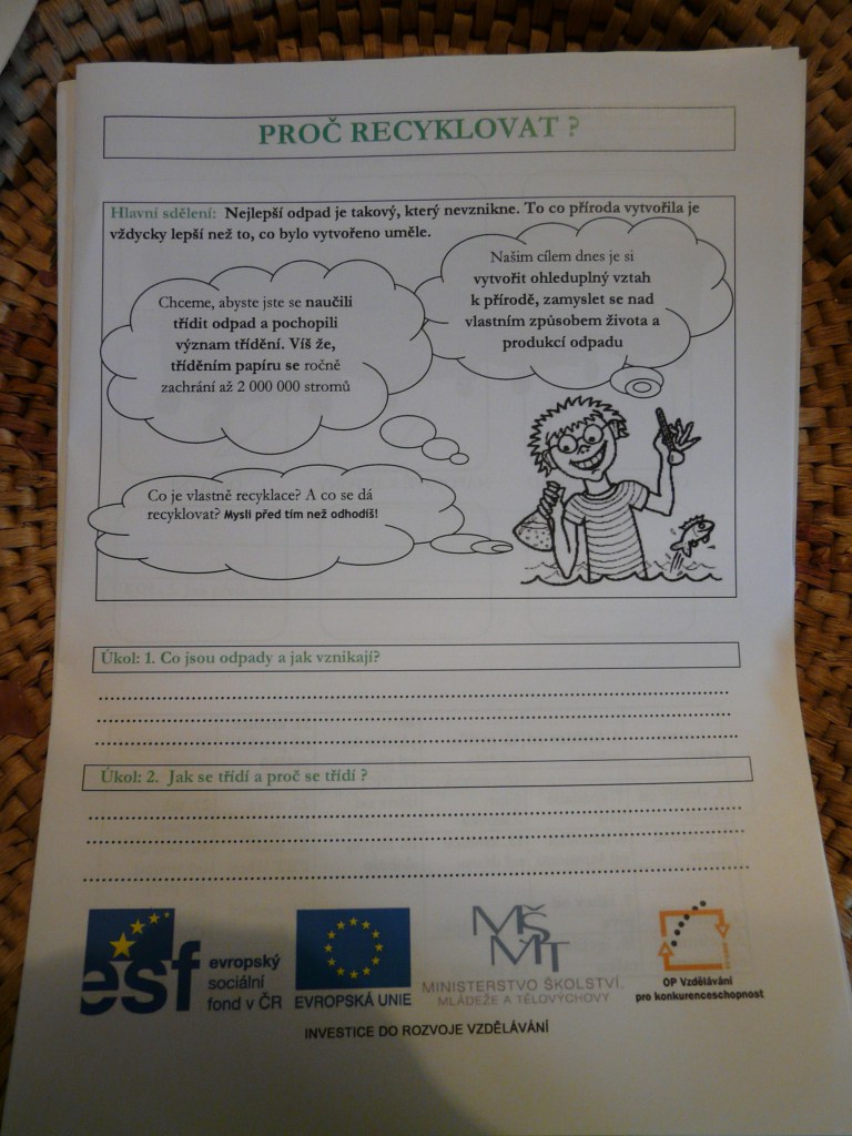 V rámci programu „Recyklace“ si žáci zábavnou formou vysvětlili význam recyklace odpadů. Sami si vyzkoušeli vyrobit ruční papír, který si vzali s sebou domů.