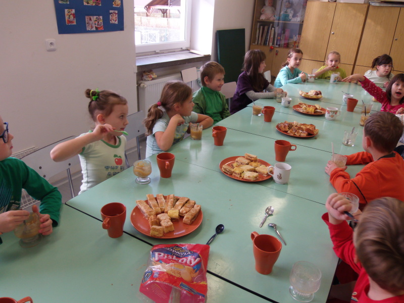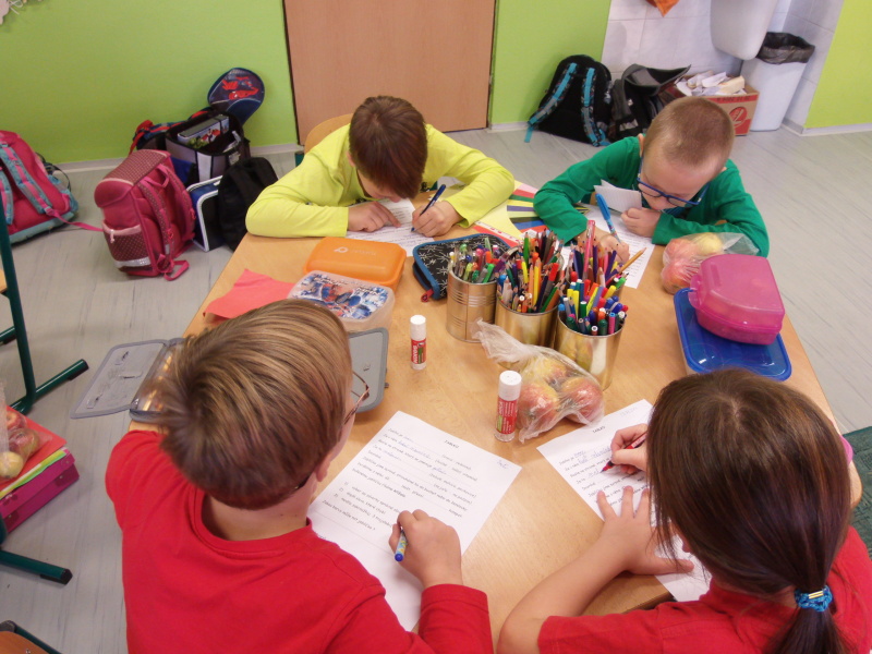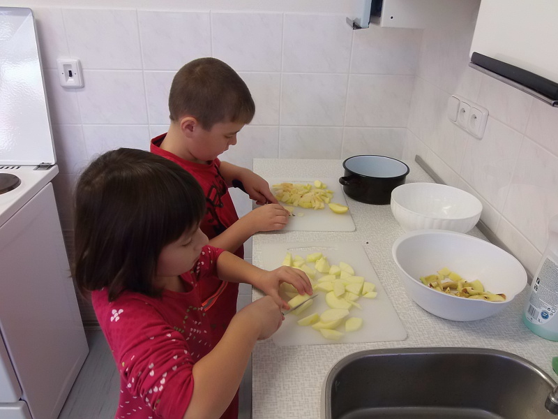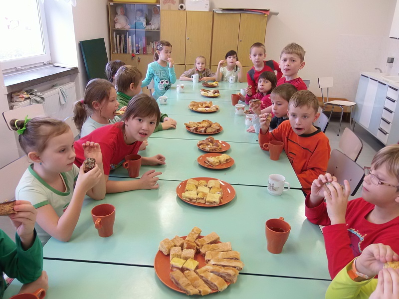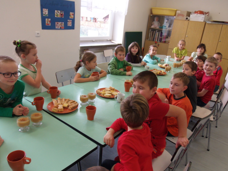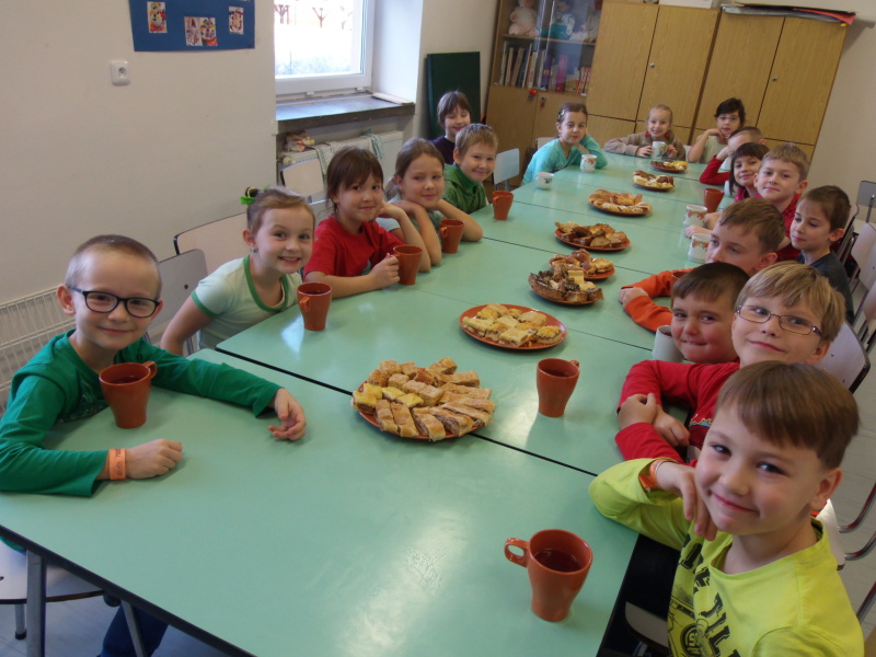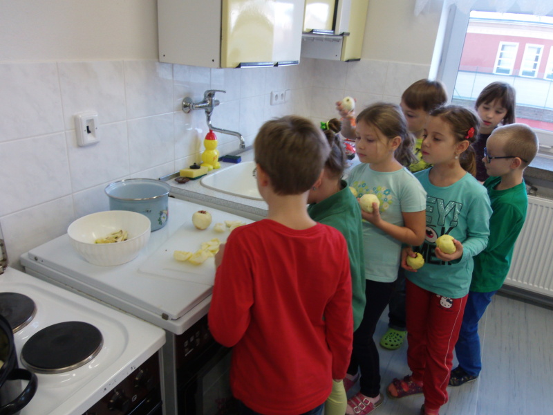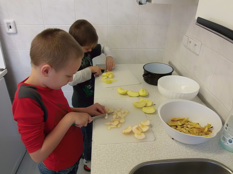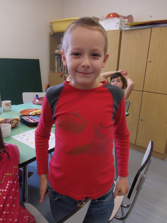 Dnešní den jsme věnovali jablíčkům, protože je máme rádi. Zopakovali jsme si vše, co o tomto ovoci víme z prvouky, vypočítali jablíčkové příklady, poslechli si pohádku o jabloňce a vyrobili jsme si každý své jablíčko i s červíkem. K tomu jsme měli od našich báječných maminek skvělé jablkové moučníky (škoda, že nejde vyfotit i mlaskání) a společně jsme si uvařili jablkovou přesnídávku. Dopoledne nám uteklo velmi rychle, ale my se budeme těšit na další projektový den!
