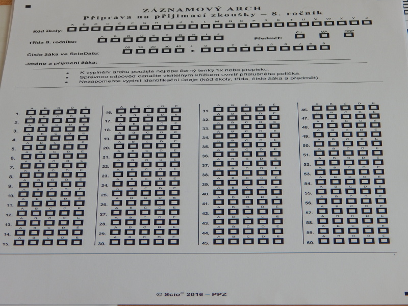 V úterý 10.5.2016 psali žáci 8. ročníku SCIO testy.