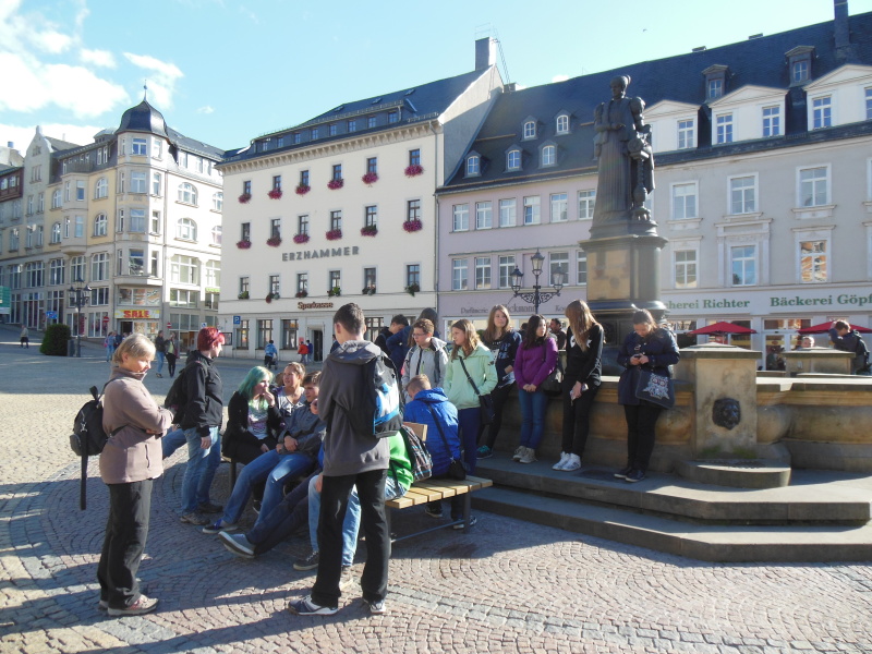 V pondělí jsme se přesunuli do Geyeru, kde jsme měli přichystáno ubytování. Hned v úterý ráno nás čekalo dopolední vyučování v Oberschule Auerbach a stejně tak tomu bylo i ve středu. V úterý odpoledne jsme navštívili krásný přírodní útvar Grafensteine a přehradu v Geyeru. Ve středu odpoledne jsme poznávali městečko Annaberg. No a ve čtvrtek jsme celý den strávili v Drážďanech. Procházeli jsme historickým centrem, kde nám pověděla mnoho zajímavosti paní učitelka z Auerbachu, která nás provázela. Nejprve jsme si prohlédli Stemperovu operu, komplex budov se zahradou - Zwinger - jedno z nejvýznamnějších stavebních děl z období baroka v Německu., Gemälde Galerie a renezanční zámek. Poté jsme se prošli po terasách kolem řeky Labe. Postupně jsme přišli k symbolu saské metropole – kostelu Frauenkirche, kde jsme vystoupali na věž a odtud se nám odkryl překrásný výhled na celé Drážďany. Následně jsme prošli přes Altmarkt až do nákupní zóny, kde jsme si odpočinuli a nechali čas i na nákupy. Spokojeni jsme se vraceli s taškami dárků. Cestou zpět nás ale zastihla bouřka, tak jsme do autobusu doběhli celí promáčení. Přesto se nám všem v Drážďanech moc líbilo. V pátek už jsme se přepravovali domů a užili si cestu po naší úžasné D1. Nebyli jsme ušetřeni ani dopraní zácpy v Brně. Nakonec jsme ale dorazili v plánovaném čase domů.