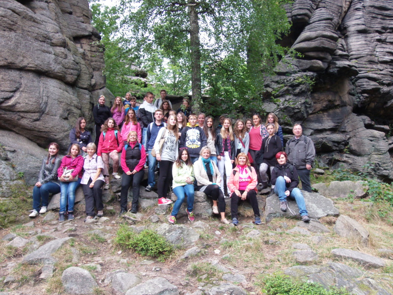 Výlet do Německa byl super. Byli jsme ubytováni v Geyeru na samotě u skokanských můstků. Bydleli jsme v chatkách - kluci měli jednu chatku a holky dvě. Dva dny jsme chodili do školy v Auerbachu. Škola měla svá pro a proti. Neměli tam bufet ani jídlo mi nechutnalo, ale měli tam stolní fotbal. Velice se mi líbily skály, o kterých se šíří různé zvěsti. Na ty skály jsme vyšli až nahoru. Ve čtvrtek jsme byli v Drážďanech, kde jsme měli dlouhý rozchod - pro holky jako dělaný! Všude samé oblečení a kosmetika. Když jsme šli z nákupního centra, tak jsme zmokli na kost. Náladu nám to ale nezkazilo. Pobyt v Německu se mi moc, moc, moc líbil.