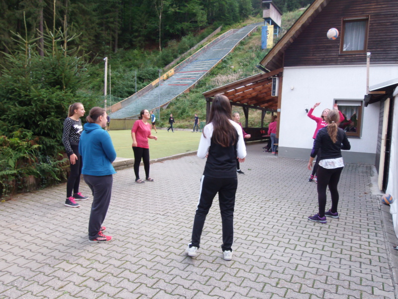 Díky projektu paní zástupkyně Světlíkové jsme 7. září 2015 odjeli na jazykový pobyt do Německa. Cesta byla sice dlouhá, ale díky častým přestávkám a dobrému kolektivu i rychle utekla. Když jsme přijeli na ubytovnu, všechny nás zaujaly skokanské můstky, které byly v okolí. Další den jsme šli do německé školy, která byla hodně velká. Líbilo se mi, že se žáci nemuseli přezouvat. Rozdělili jsme se na skupinky a šli jsme se podívat do jejich vyučování. Odpoledne jsme šli na procházku po okolní přírodě. Také jsme navštívili Annaberg, jehož hlavní dominantou je kostel svaté Anny. Ve čtvrtek jsme jeli na výlet do Drážďan, kam jsme se všichni moc těšili. Navštívili jsme tam zajímavé památky a také velké nákupní centrum. Večer jsme pak měli diskotéku, kterou jsme si všichni moc užili. Jsem moc ráda, že jsem se do Německa mohla podívat a moc jsem si tento výlet užila.