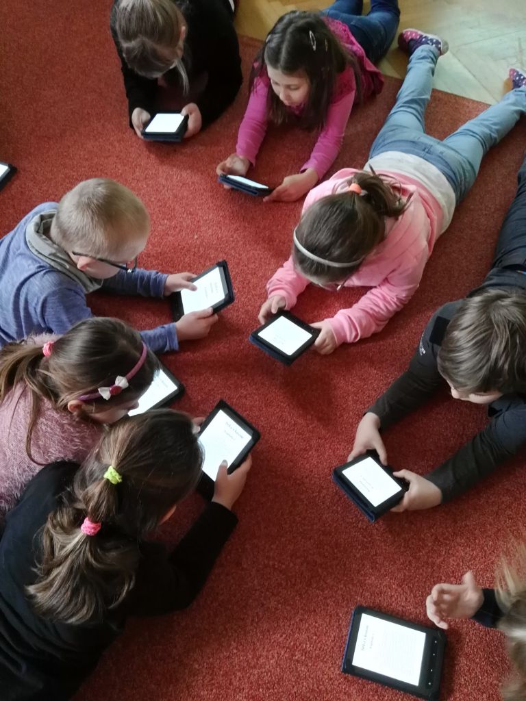 Ať už jsme kdekoliv, čteme rádi.... Zjistili jsme, že četba může být velké dobrodružství, a také nám nabízí poučení. V klubu jsme se seznámili se čtečkami  elektronických knih, navštívili jsme  místní knihovnu, prozkoumali les anebo jen tak ve třídě pracovali na pracovních listech. Už se moc těšíme na pěkné teplé počasí, abychom mohli s našimi oblíbenými knížkami vyrazit ven - třeba na školní zahradu :-)