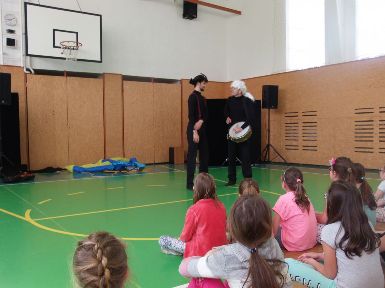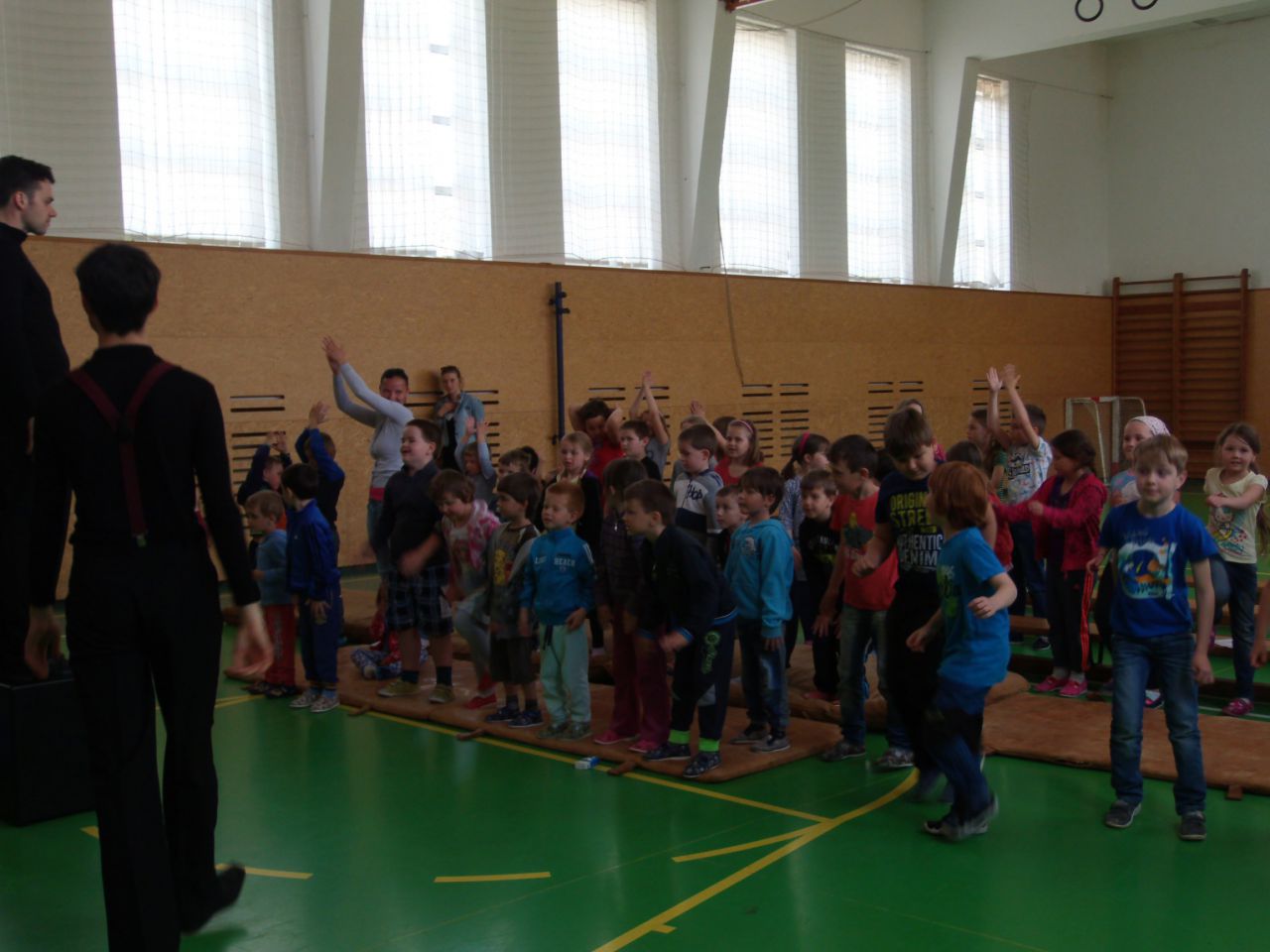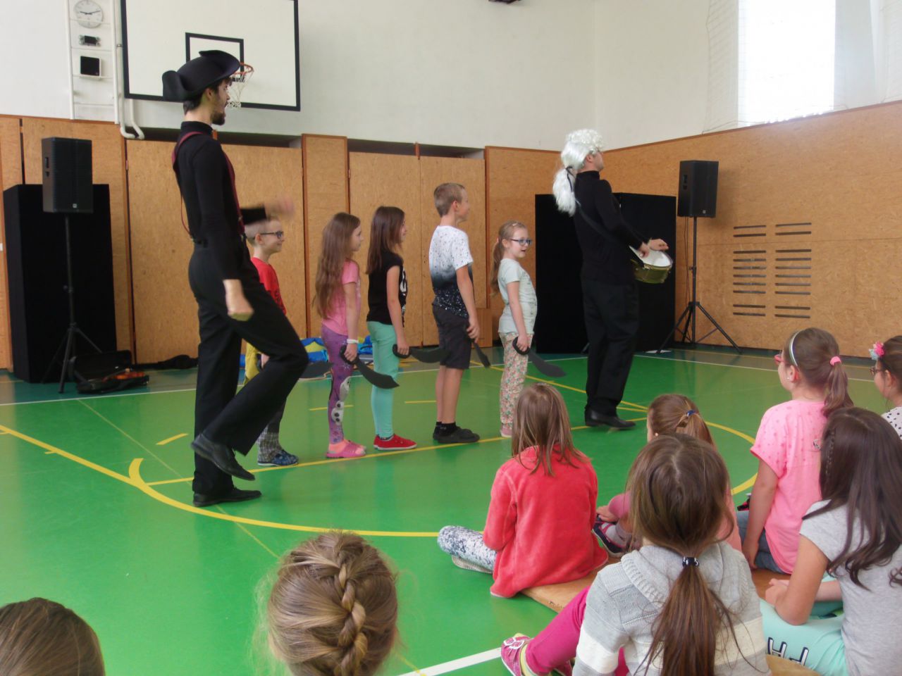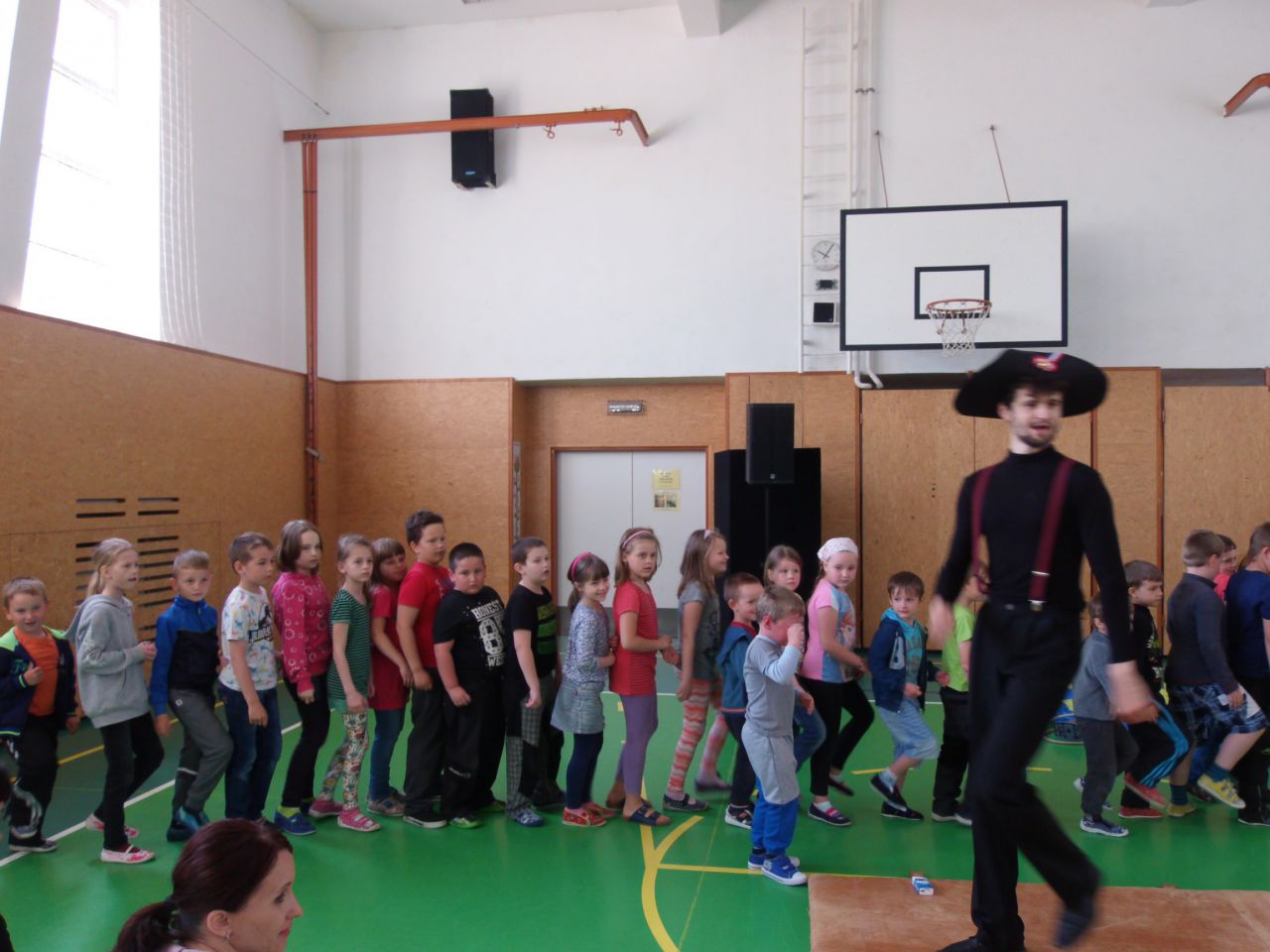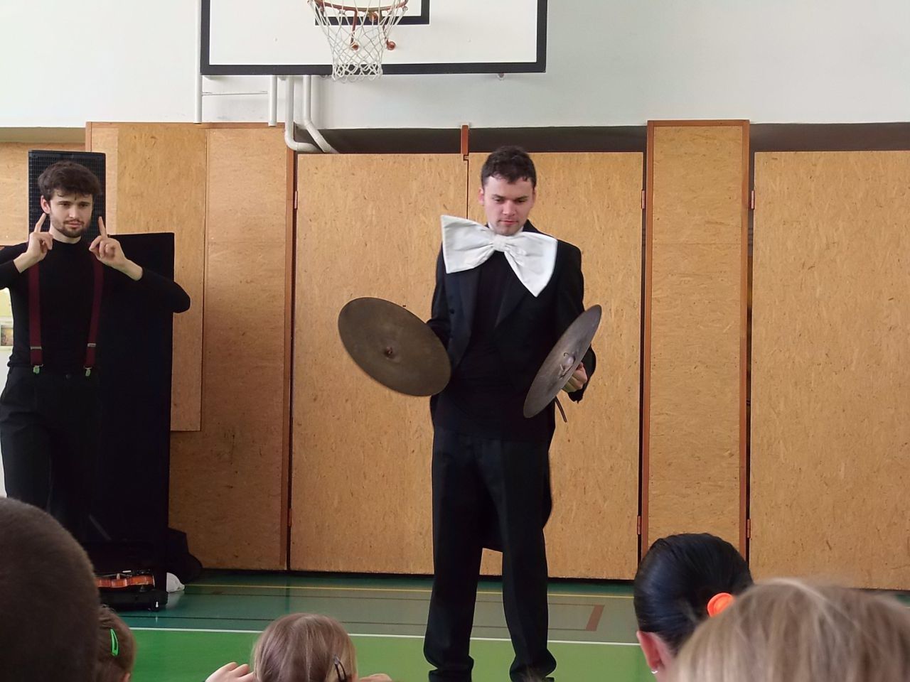 Ve čtvrtek 18.5. k nám zavítali profesionální hudebníci z Brna, aby dětem z 1. stupně a MŠ přiblížili jednotlivá hudební období - pravěk, starověk, středověk, novověk a hudbu 20. stolení. Předvedli také důležitost rytmu a hudby pro člověka v těcho historických etapách. Do děje se zapojily i děti a staly se tak součástí velmi zdařilého představení.