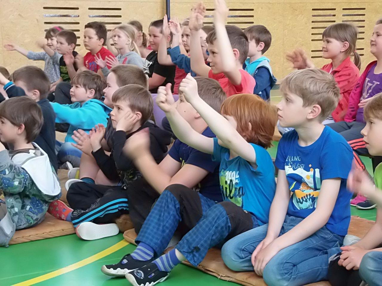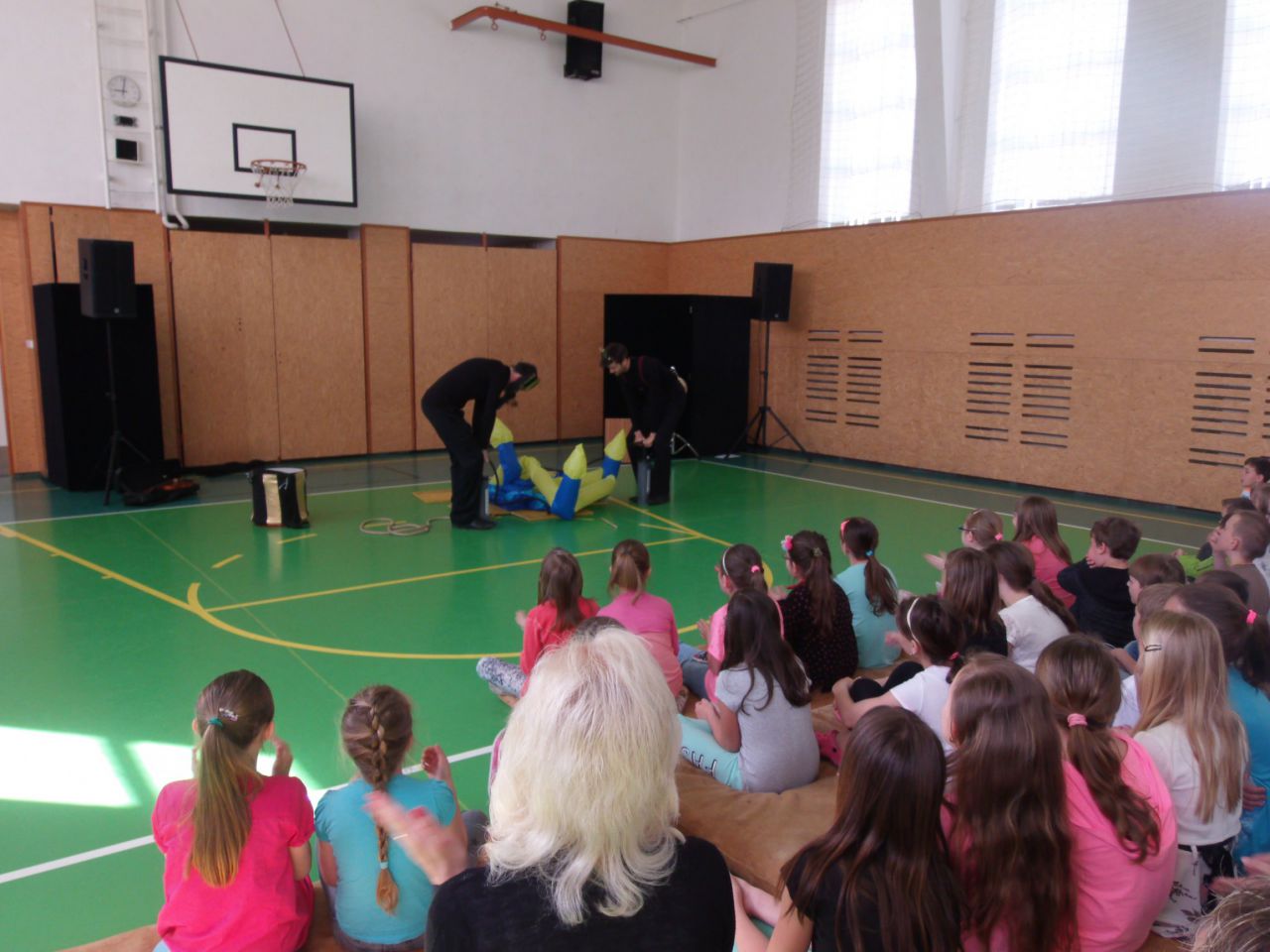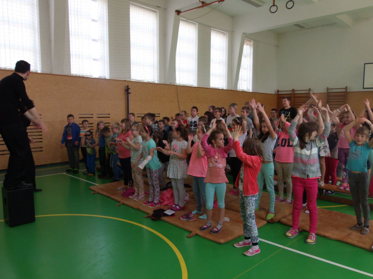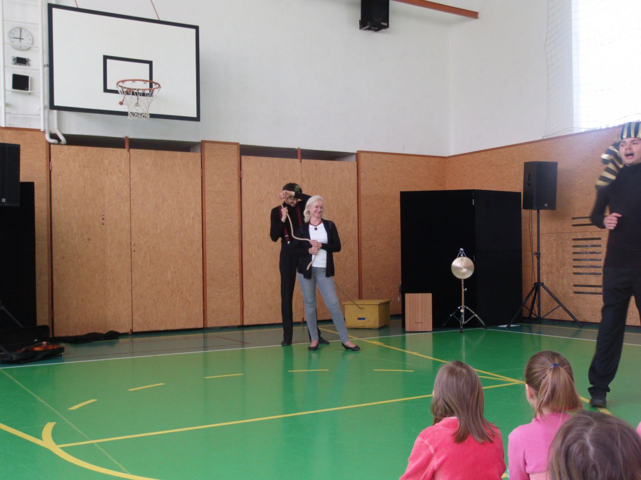 Ve čtvrtek 18.5. k nám zavítali profesionální hudebníci z Brna, aby dětem z 1. stupně a MŠ přiblížili jednotlivá hudební období - pravěk, starověk, středověk, novověk a hudbu 20. stolení. Předvedli také důležitost rytmu a hudby pro člověka v těcho historických etapách. Do děje se zapojily i děti a staly se tak součástí velmi zdařilého představení.