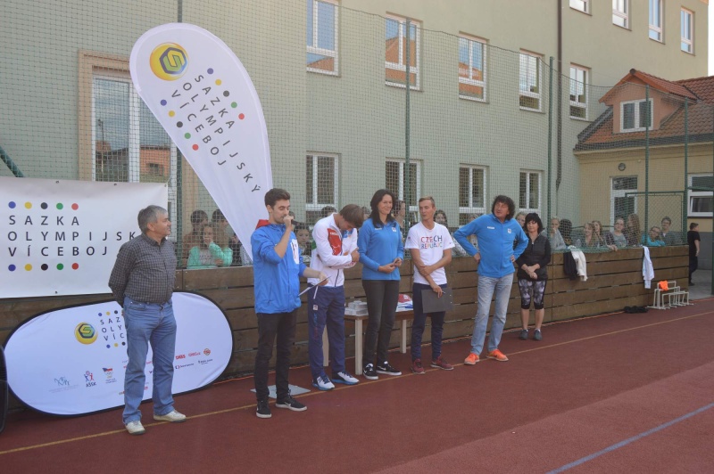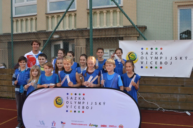 V úterý 27.9.2016 dorazili na naši školu olympionici v čele se Šárkou Kašpárkovou (trojskok) a Honzou Kufem (moderní pětiboj). Až na 70 dětí se aktivně zapojilo do tréninku, který začal společnou rozcvičkou a následnými stanovišti. Žáci si vyzkoušeli střelbu z laserové pistole, proběhli si opičí dráhu atd...