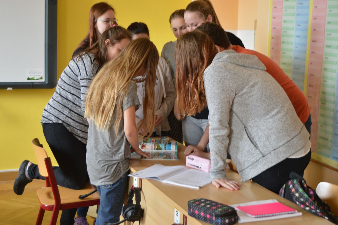 Žáci 9. ročníku se zapojili do projektové výuky v němčině. Tématem byla příprava na letní dovolenou. Úkolem byl výběr destinace, hotelu, zkalkulování ceny a soupis potřebného oblečení. Vytvořily se dvě skupiny. Ty vedla Emma ze Švýcarska a žákyně 4. třídy Veronika, která němčinu dobře ovládá. Výsledkem byly dva plakáty se zadaným tématem, kde si žáci nenásilnou formou osvojili německou slovní zásobu s tématem cestování a oblečení.