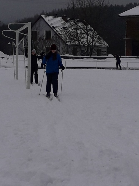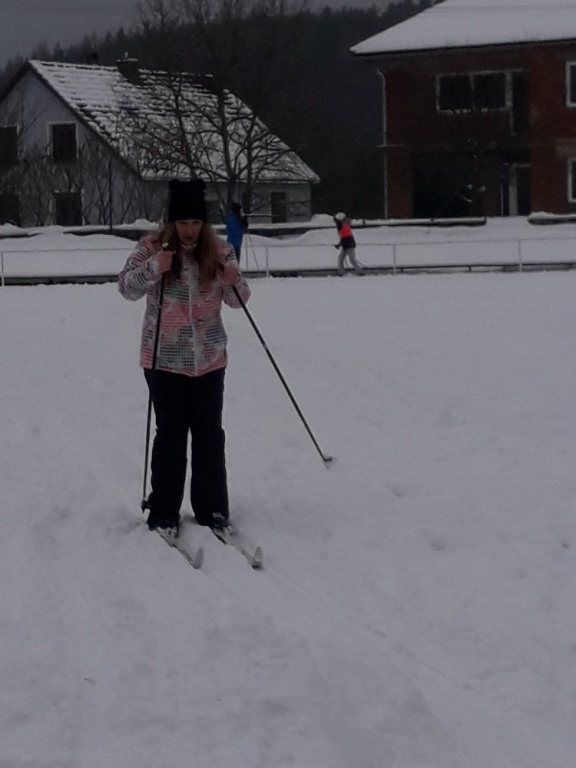 I když je letošní zima v naší oblasti na sněhové podmínky chudší, přece jen si jednou děvčata ze sedmého ročníku na běžkách zajezdila. Myslím, že celou hodinu tělesné výchovy panovala velmi dobrá atmosféra. Snad k nám příští rok bude sněhová nadílka příznivější.