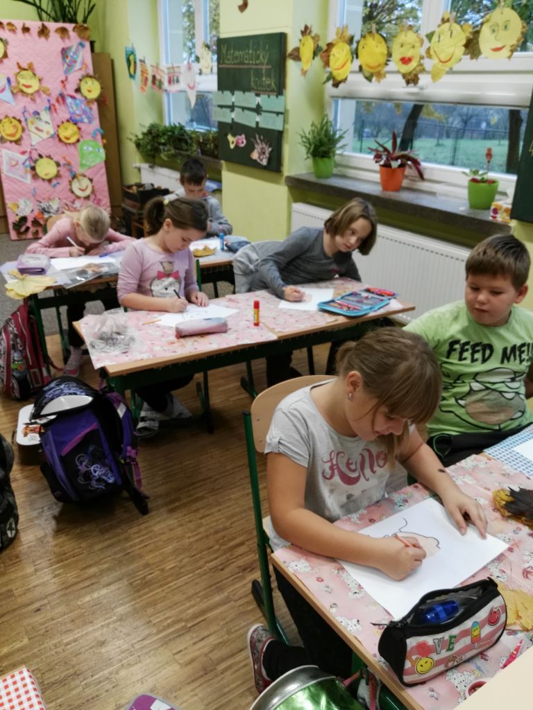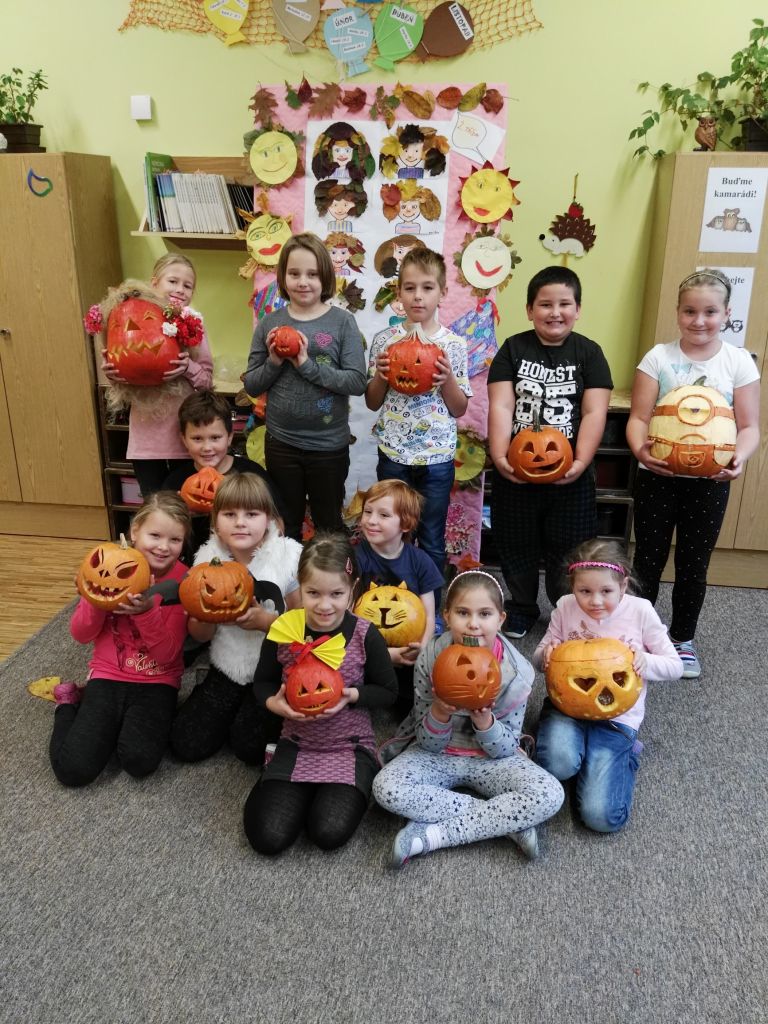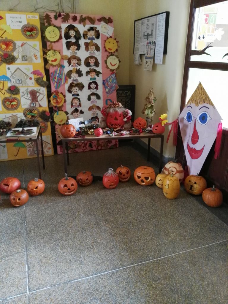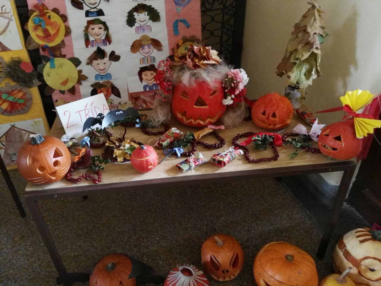 "Padá listí zlaté rudé, je ho plná zahrada..." Slovy této básničky jsme zahájili naše podzimní hrátky ve druhé třídě. Podzim se nám objevil snad ve všech předmětech. Když nám počasí přálo, vyrazili jsme do lesa, kde jsme poznávali a sbírali přírodniny, které jsme pak využívali ve škole. V pracovních činnostech jsme vyráběli jablíčko z šípků, miminko z kaštanů, ve výtvarné výchově podzimní obličeje a draky. A naše krásné dýně nám pomohli vyřezat rodiče. Práce se nám dařila a vše jsme si vystavili spolu s kamarády z I. stupně ve vestibulu školy.