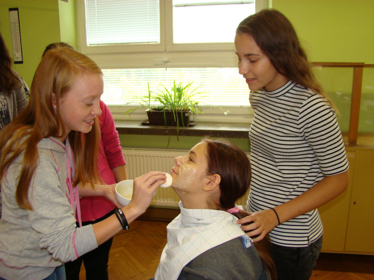 V rámci volitelného předmětu „Domácnost“ vyráběla děvčata z 8. ročníku různé pleťové masky z přírodních materiálů. Ukázalo se, že příprava je snadná a připravené kosmetické výrobky  jsou mnohonásobně levnější než v drogériích. I toto je cesta k dobrému hospodaření v domácnostech budoucích hospodyněk.