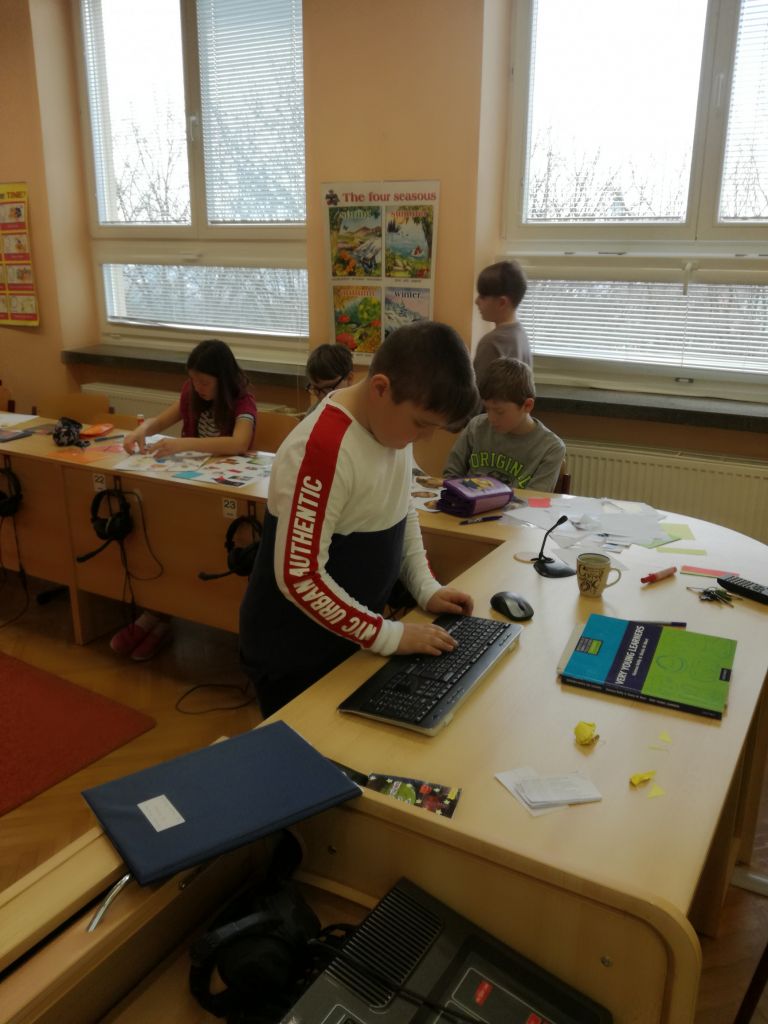 Více než týden pracovali čtvrťáci na projektu o nich samotných. Vystřihovali, lepili, hledali ve slovníku, psali, připravovali a následně prezentovali své práce.