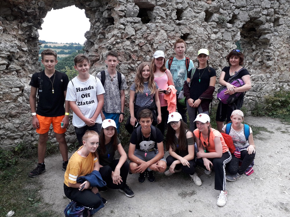 Ve dnech 26. - 27. června se žáci 8. ročníku zúčastnili školního výletu do Sidonie. I přes počáteční komplikace s termínem výletu a jeho postupnému přesouvání se vyplatilo rčení „Všechno zlé je pro něco dobré“. Výlet se vydařil po všech stránkách. Především nám přálo počasí. První náročný den, kdy jsme měli naplánovaný výšlap na Vršatec, bylo příjemné počasí s občasnými mráčky a žádnými velkými tropickými teplotami. Cesta k vrcholu nám trvala asi dvě a půl hodiny a děti se s častými zastávkami vůbec necítily unavené. Navštívili jsme i zříceninu hradu Vršatec, odkud byl nádherný výhled do blízkého i dalekého okolí. Potom jsme si chvíli odpočinuli v hotelu Vršatec a cesta dolů nám uběhla velmi rychle. Na chatě nás již čekal náš pan ředitel, kterému chata patří. Zašli jsme si ještě společně na zmrzlinu do místního pohostinství U Pekařů a zbytek dne jsme strávili opékáním špekáčků, zpěvem s kytarami u ohně a hrami kolem chaty. I když se večerka, především díky děvčatům, které si měly stále co vyprávět, protáhla, ráno byli všichni vyspaní do růžova. Čekal nás krásný slunečný den, snídaně v trávě se všemi dobrotami, které napekly maminky dětí a my jsme jen tak lenošili. Ale protože člověka šlechtí práce, tak kluci s panem učitelem a panem ředitelem nadělali dřevo a děvčata s paní učitelkou uklízela a vařila dobrou gulášovou polévku. Po obědě jsme vše uklidili a čekal nás odjezd domů. Nikomu se opravdu nechtělo, ale všechno má svůj začátek i konec. Jsme rádi, že se nikomu nestalo žádné zranění, z osmáků se stal ještě lepší kolektiv a myslíme, že na tento výlet budou dlouho vzpomínat. Velké poděkování patří našemu panu řediteli Aleši Kozubíkovi, bylo to pro nás všechny pěkné zakončení letošního školního roku.
