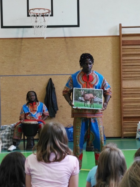 V úterý 23. 4. k nám do školy zavítala dvojice afrických hudebníků z Demokratické republiky Kongo. Paul, vedoucí skupiny, žije v České republice již 8 let . Seznámil děti s africkou kulturou, s podmínkami života, a také přiblížil dětem školství v Africké republice.