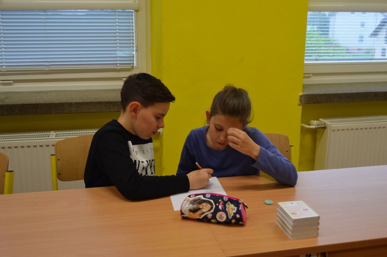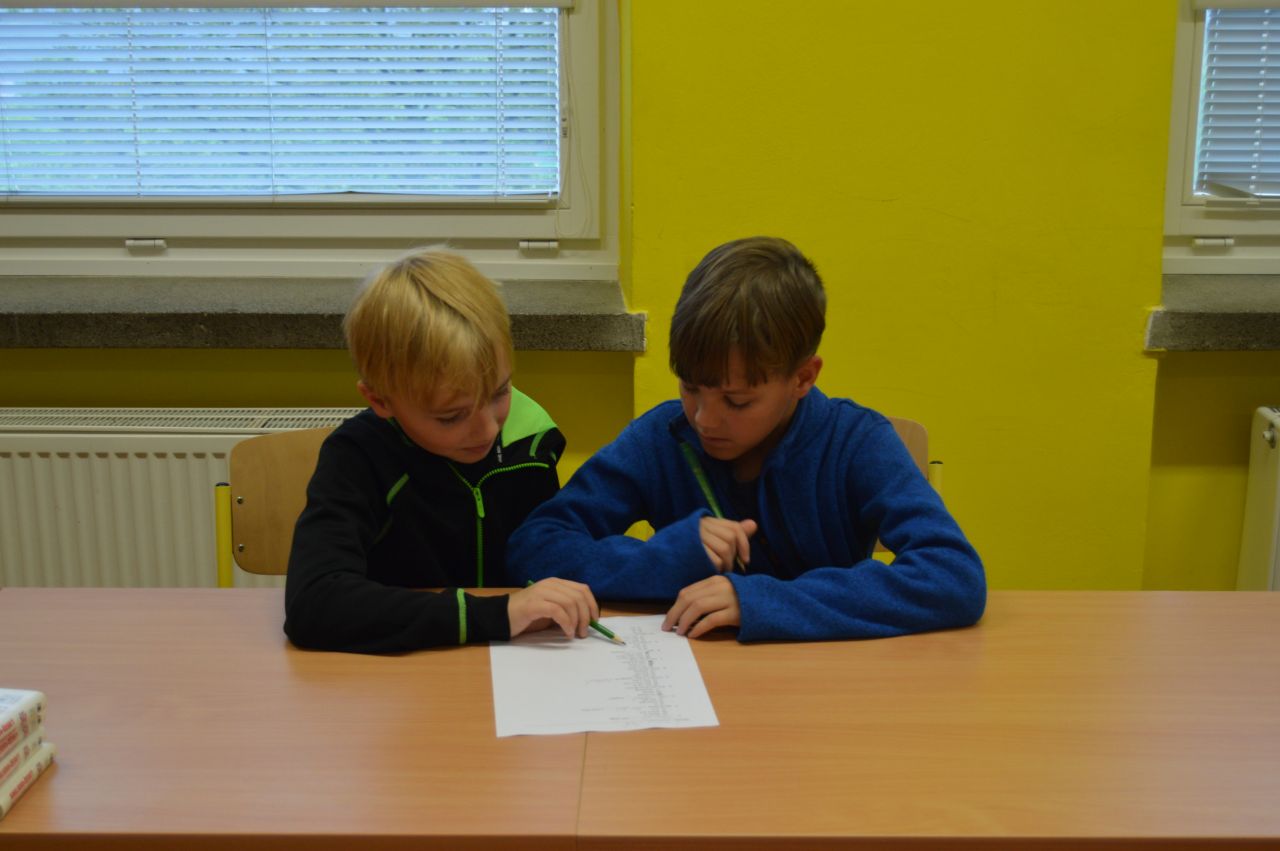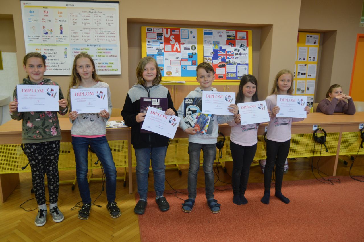 Ta se skládala z několika částí- poslech, vyhledávání ve slovníku, gramatický test a ústní část. Soutěřilo se ve dvojcích. Soutěžící se měli představit a hovořit na jedno z vylosovaných témat. Laťka byla nasazena vysoko a ve velké konkurenci nejlépe obstáli Ondra Šimák a Míša Dohnal z naší školy. Druhé místo obsadily Verča Běloňová a Gabča Húšťová z Vysokého Pole a třetí pak skončily Nikol Horáková a Ema Šenovská ze Slopného.