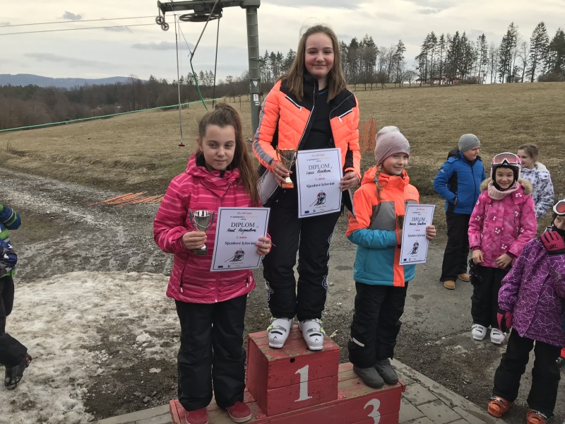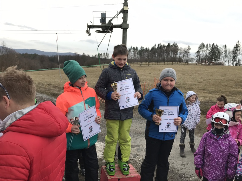 Ve čtvrtek 7.3. proběhly na lyžařské svahu v Újezdě lyžařské závody žáků 1. stupně. Závodů se zúčastnilo celkem 6 okolních škol - Újezd, Dolní Lhota, Luhačovice, Brumov-Bylnice, Valašské Klobouky a Nedašov, které reprezentovaly vždy 2 kluci a 2 dívky. Naši mladí závodníci se v této konkurenci rozhodně neztratili, Anička Karpielová skončila na pěkném 2. místě mezi dívkami a David Repatý si vyjel 3. místo mezi kluky. Celkově jsme skončili na 2. místě mezi školami. Naši školu reprezentovali: A.Karpielová, A.Zvončáková, D.Repatý, F.Psota všichni z 5.A. Všem závodníkům patří uznání, za úspěšné zvládnutí nelehké tratě.