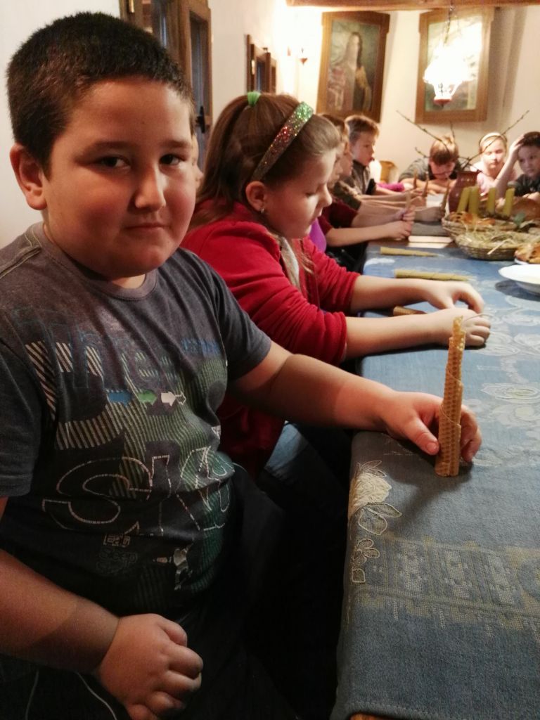 Žákům se program moc líbil a tím, že se sami mohli zapojit do práce - ať už to bylo pečení "vánočního pána" nebo výroby svíčky ze včelího vosku- si odnášeli moc pěkný zážitek.