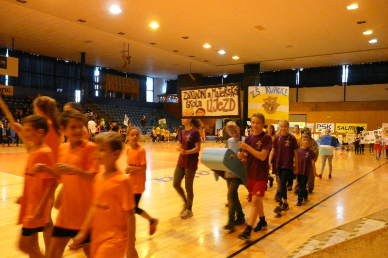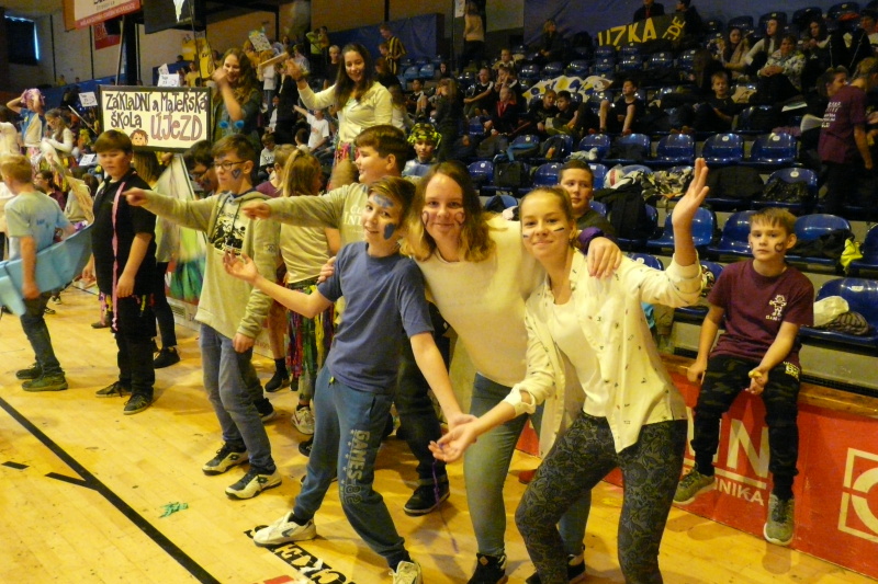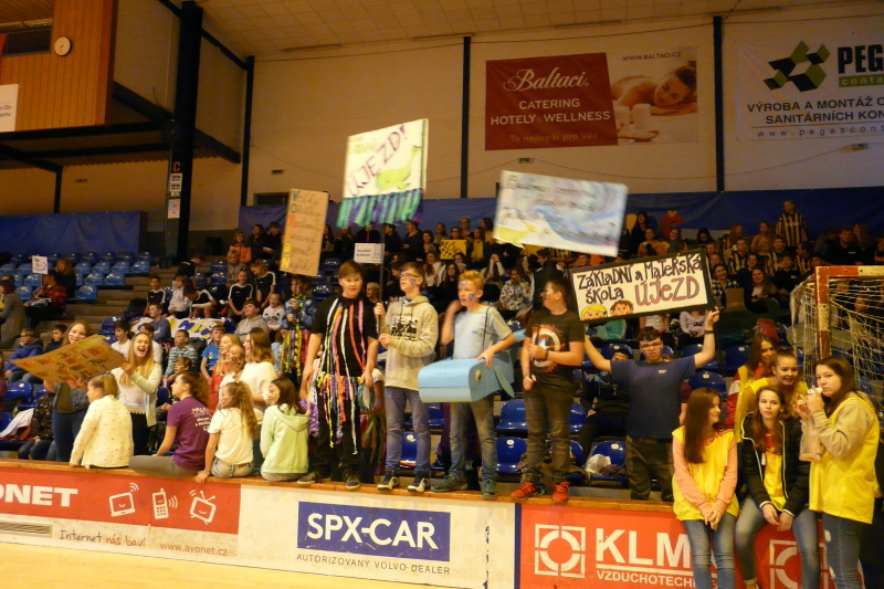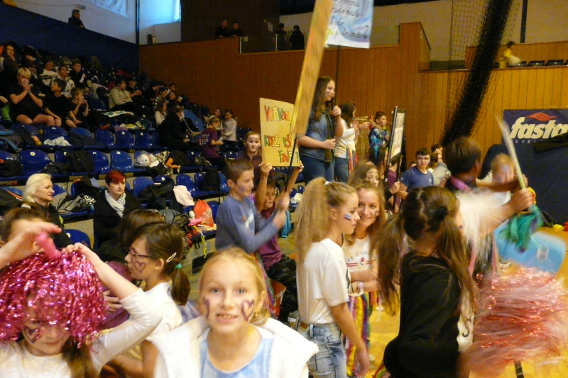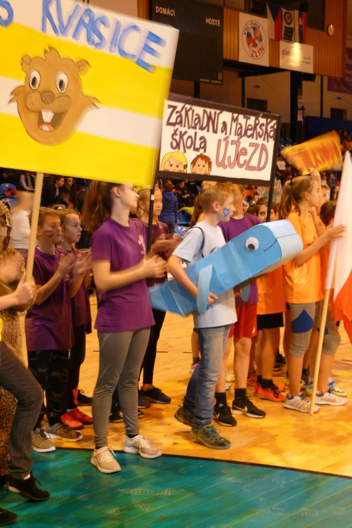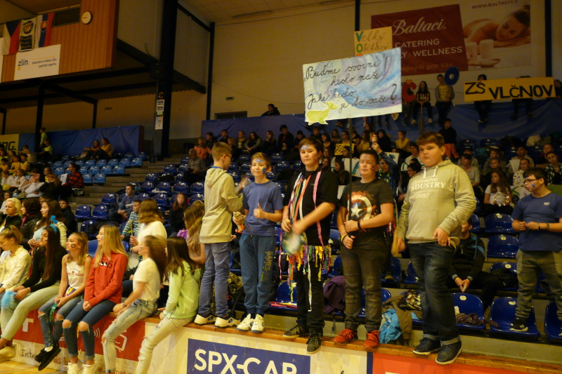 Ve středu 14. 11. 2018 jsme vyrazili na 19. ročník Zlínského vorvaně. Vyrazili jsme časně ráno již v 6.45, abychom si v hale Euronics obsadili ta správná místa. Rozhodli jsme se totiž, že nic nenecháme náhodě a nějakou tu trofej domů přivezeme. Přípravy letos začaly probíhat už v polovině září. Nejvíce se zapojili kluci z 8. B – Ivan Vícha, Danek Hlavica, Matyáš Kolařík a Jan Machů, kteří vyrobili maskota, papírového vorvaně, jenž nám zajistil titul nejlépe fandící školy. O texty na transparenty se postarala Viola Mačková, také z 8. B. Holky z 8. A a z 5. třídy si vyrobily barevné sukně, které si nakonec oblekli i někteří kluci. Atmosféra byla báječná a neopakovatelná. Všichni jsme podporovali nejen náš tým, ale i jiné školy.