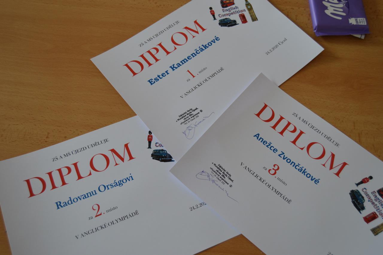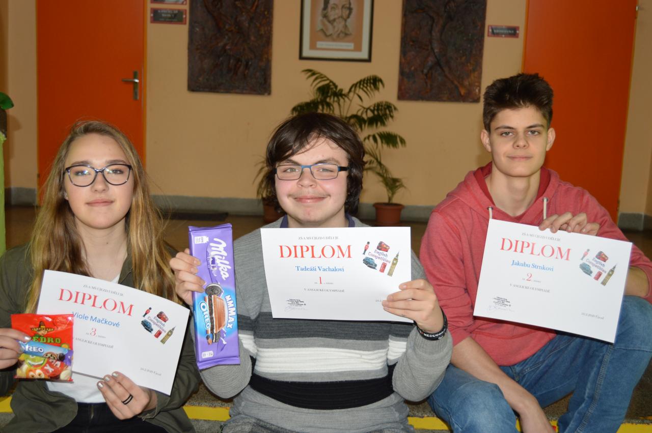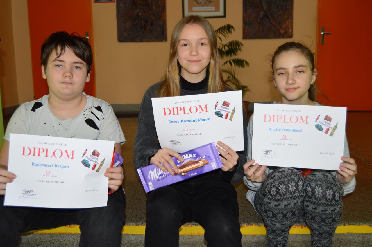 V měsíci únoru proběhla na naší škole Anglická olympiáda. Skládala se z části poslechové, gramatické a práce s textem. Soutěžilo se ve dvou kategoriích. V té pro 6. a 7. ročníky se nejlépe umístili následující žáci: