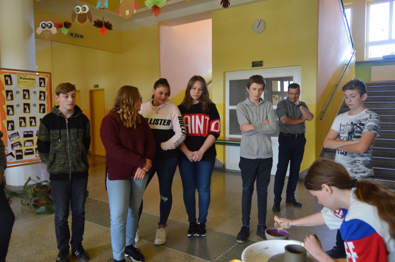V pondělí 7. 10. 2019 navštívila naši školu Střední odborná škola Luhačovice. Pedagogové a studenti předvedli našim žákům devátého i osmého ročníku umělecké obory, které se na jejich škole vyučují. Předvedly se nám obory Design a tvorba keramiky, Design a zpracování dřeva a Design a zpracování kovů. Naši žáci si mohli na vlastní kůži vyzkoušet práci na hrnčířském kruhu, práci se dřevem i práci kovářskou. I když si naši žáci umělecké obory volí jen výjimečně, snad byla ukázka těchto oborů příjemný zpestřením pondělního odpoledne.