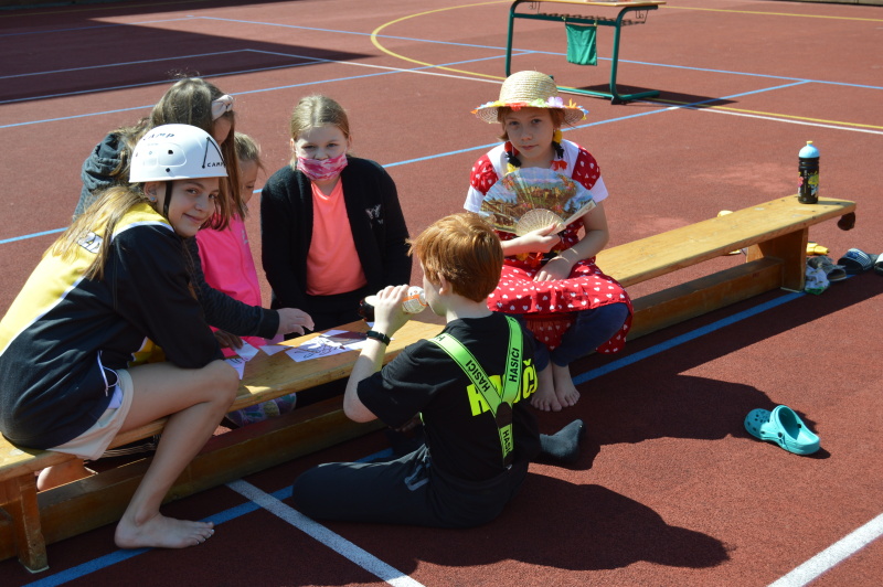 Děti z páté třídy si připravily "Pohádkové putování", při kterém museli žáci 1., 2., 3. a 4. třídy plnit pohádkové úkoly na stanovištích. Za správně vyřešenou tajenku na čekala odměna.