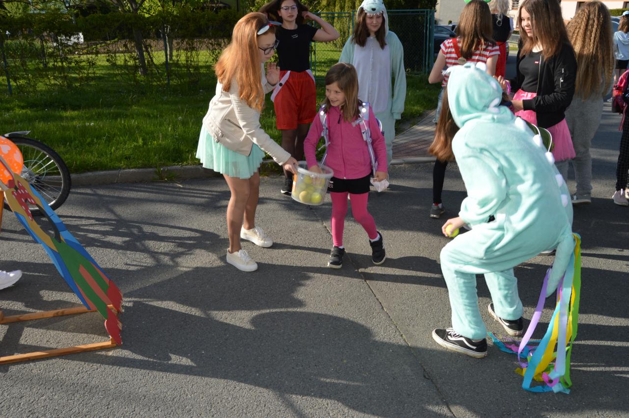 I na naší škole se na tento svátek nezapomnělo. Žáci osmých tříd spolu s pedagogickým sborem připravili ranní přivítání plné hudby, her a zábavy.