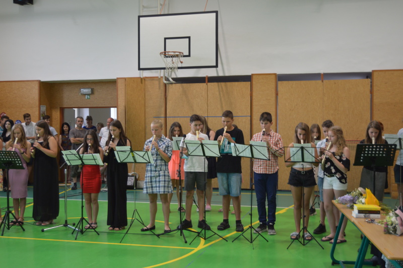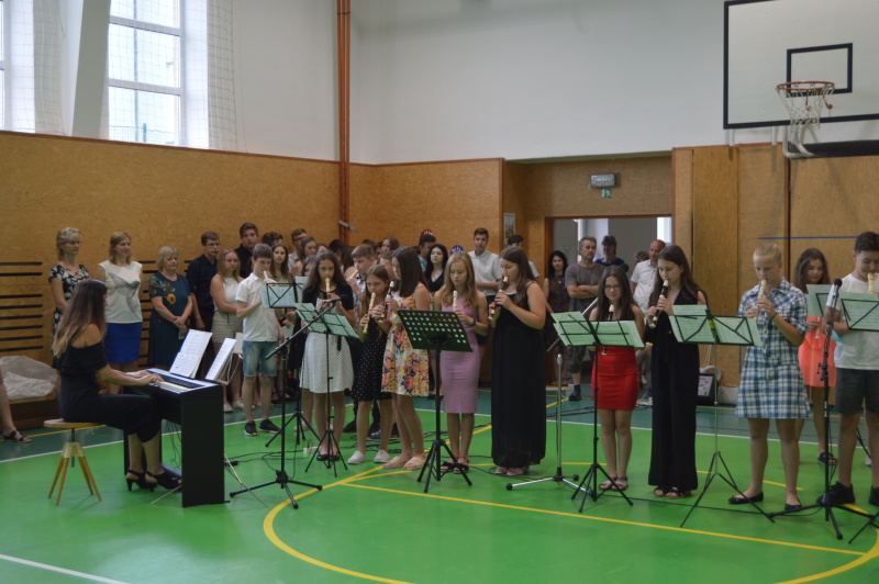 Na slavnostním ukončení školního roku 2020-2021 vystoupili žáci 6. třídy s hrou na flétnu a také se s námi rozloučili žáci 9. ročníku.