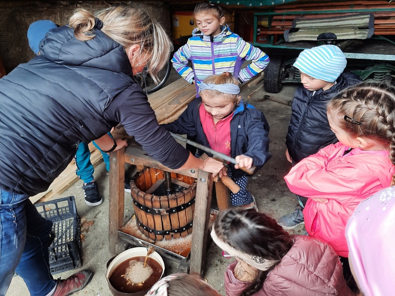 Poslední zářijový den jsme strávili v příjemném prostředí Envicentra ve Vysokém Poli. Děti se dozvěděly informace o ovoci, vypracovaly si pracovní list, upekly jablkový závín a vymačkaly mošt z jaderniček. Pak si ještě stihly prohlédnout zvířata a proběhnout se po areálu. Teď už se jen můžeme těšit na další program, který nás čeká na jaře.