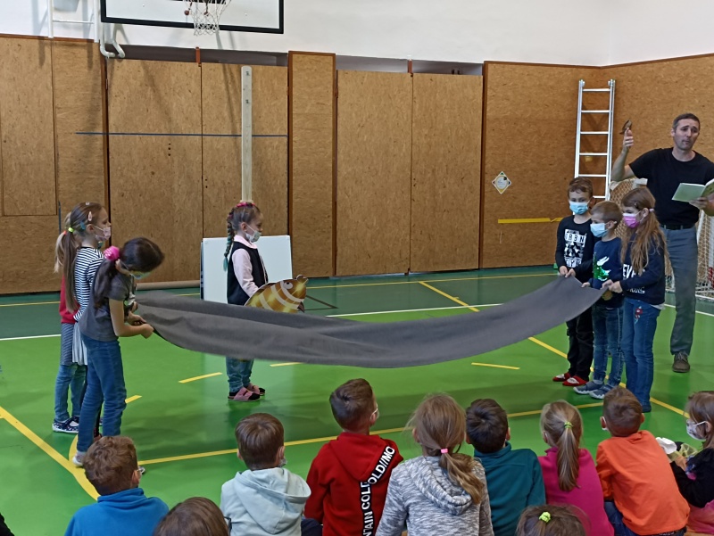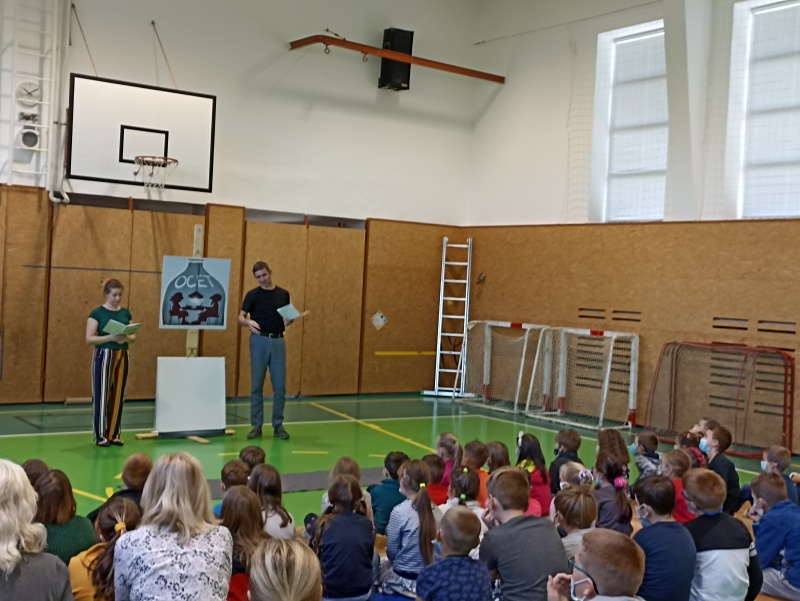 Dne 19. 10. navštívili naši školu herci ze Slováckého divadla v Uherském Hradišti. Poutavým způsobem dětem přečetli a zdramatizovali pohádku O rybáři a jeho ženě z knihy Fimfárum.