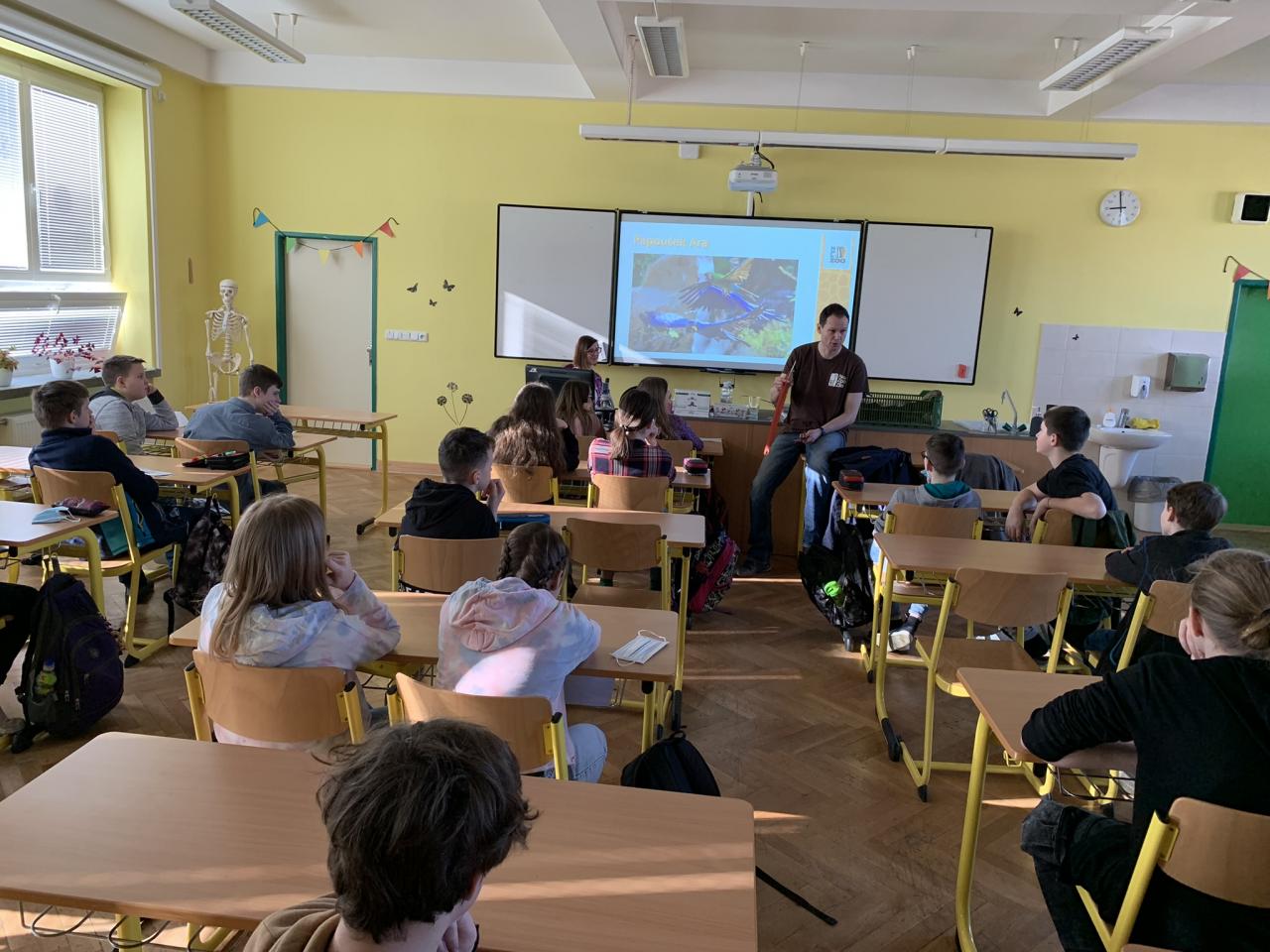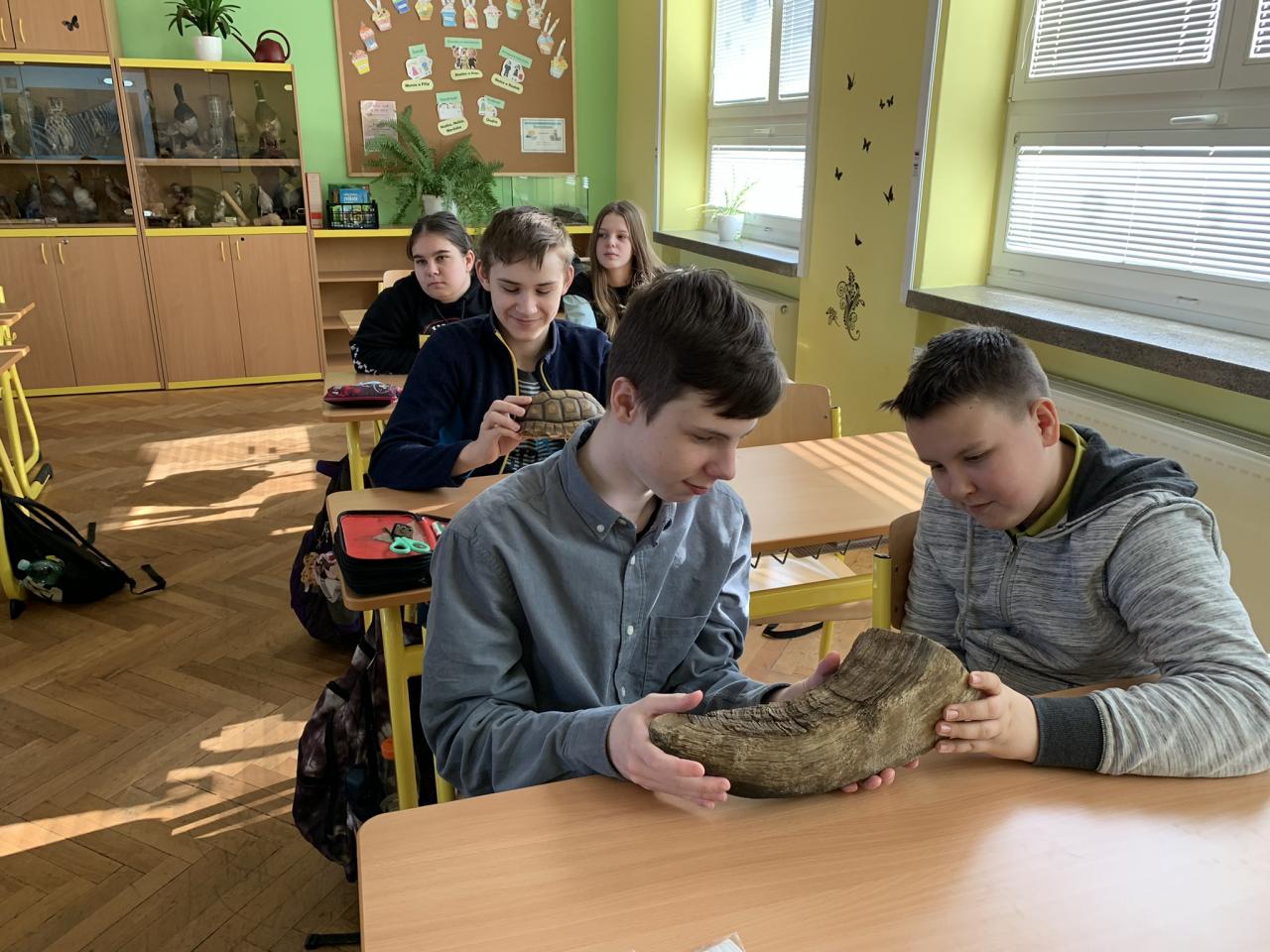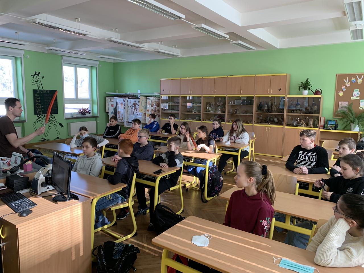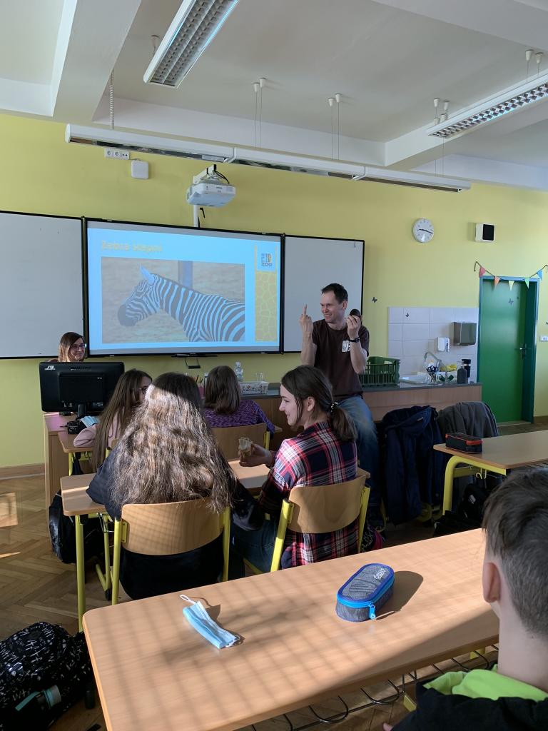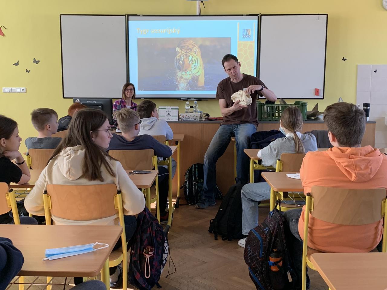 Ve středu, 2. února, nás na naší škole navštívili lektoři ze ZOO Zlín. Sedmáci se s nimi vydali na "výlet" za různými zvířaty, které můžeme v ZOO vidět. Dozvěděli se spoustu zajímavostí ze života vybraných živočichů, sáhli si na sloní kůži, roh a zub nosorožce, lebku tygra nebo kopyto zebry. Pan lektor dětem také přiblížil, jak péče o zvířata v ZOO probíhá.
