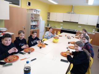 Poslední velké téma, které jsme v angličtině probírali, bylo jídlo. Rozhodli jsme se ho proto završit netradiční hodinou, ve které jsme si připravili typický americký oběd. A to hamburgery, hranolky a dobře vychlazenou colu. Vše jsme samozřejmě řádně fotodokumentovali a z fotek jsme vytvořili památeční koláž. Byla to příjemně strávená hodina.