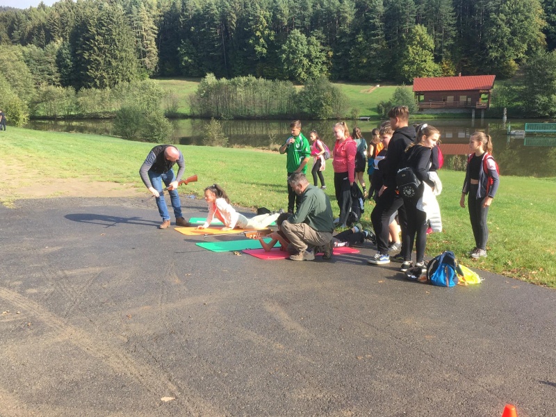 V úterý 11.10. proběhl na naší škole branný den. Žáci nejprve čerpali znalosti, jak se zachovat v krizových situacích. Poté byl vyhlášen požární poplach a následoval nácvik evakuace budovy naší školy. Všechny žáky se podařilo dostat ze školy za necelých 6 minut, tudíž máme co cvičit do dalších let. Následně šel 1. stupeň opékat k myslivecké chatě a na žáky 2. stupně čekal branný závod. V branném závodě měli za úkol žáci obejít nebo oběhnout 6 stanovišť, kde plnili úkoly týkající se zdravovědy, přírodopisu, zeměpisu nebo si vyzkoušeli střelbu ze vzduchovky. V mladší kategorii (6.-7.třída) zvítězil tým okolo kapitána Matyáše Pavelky a ve starší kategorii (8.-9. třída) vyhrál tým Michala Dohnala. Na závěr proběhl piknik s opekáním okolo rybníka v Újezdě.