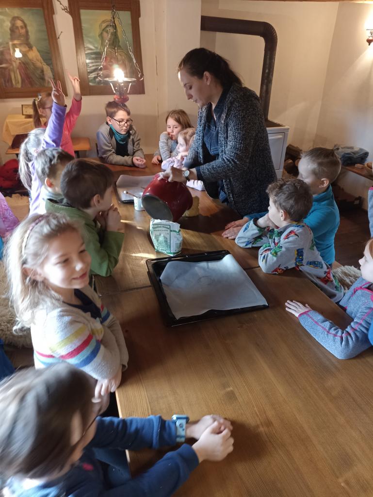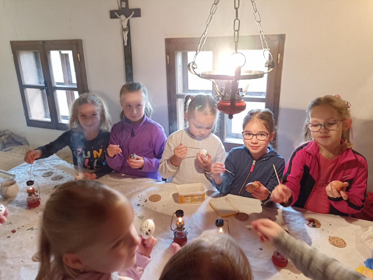 V chaloupce si děti upekly sladké jidášky, děvčata zdobila vajíčka voskem a chlapci se naučili plést pomlázku.