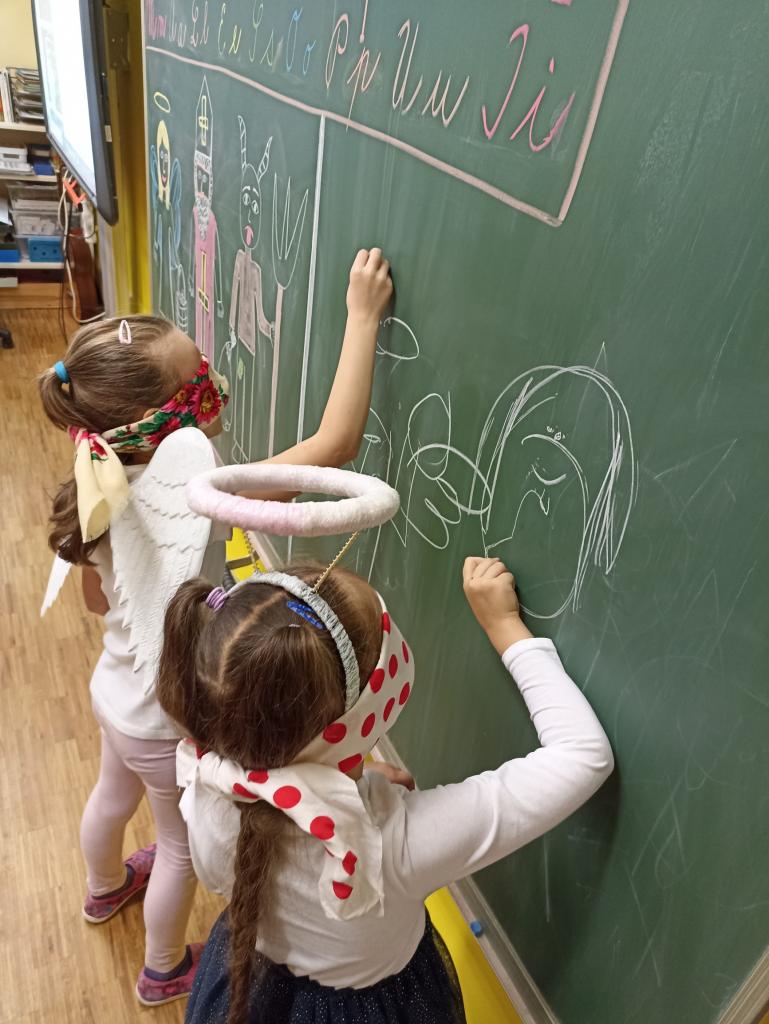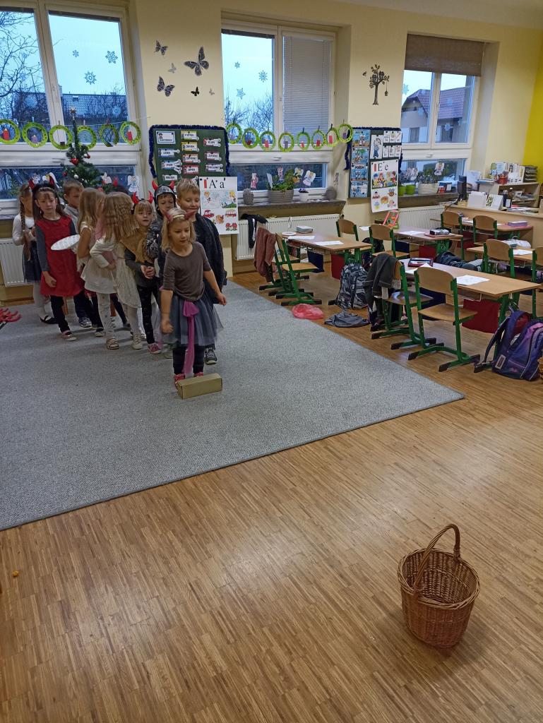 Po návštěvě mikulášské družiny z 9. třídy jsme si i my v 1. třídě připomněli svátek sv. Mikuláše a na chviličku si zahráli na andílky, čertíky a čertice. Soutěžili jsme, skotačili, tancovali a zpívali. A samozřejmě nechyběla ani nadílka.