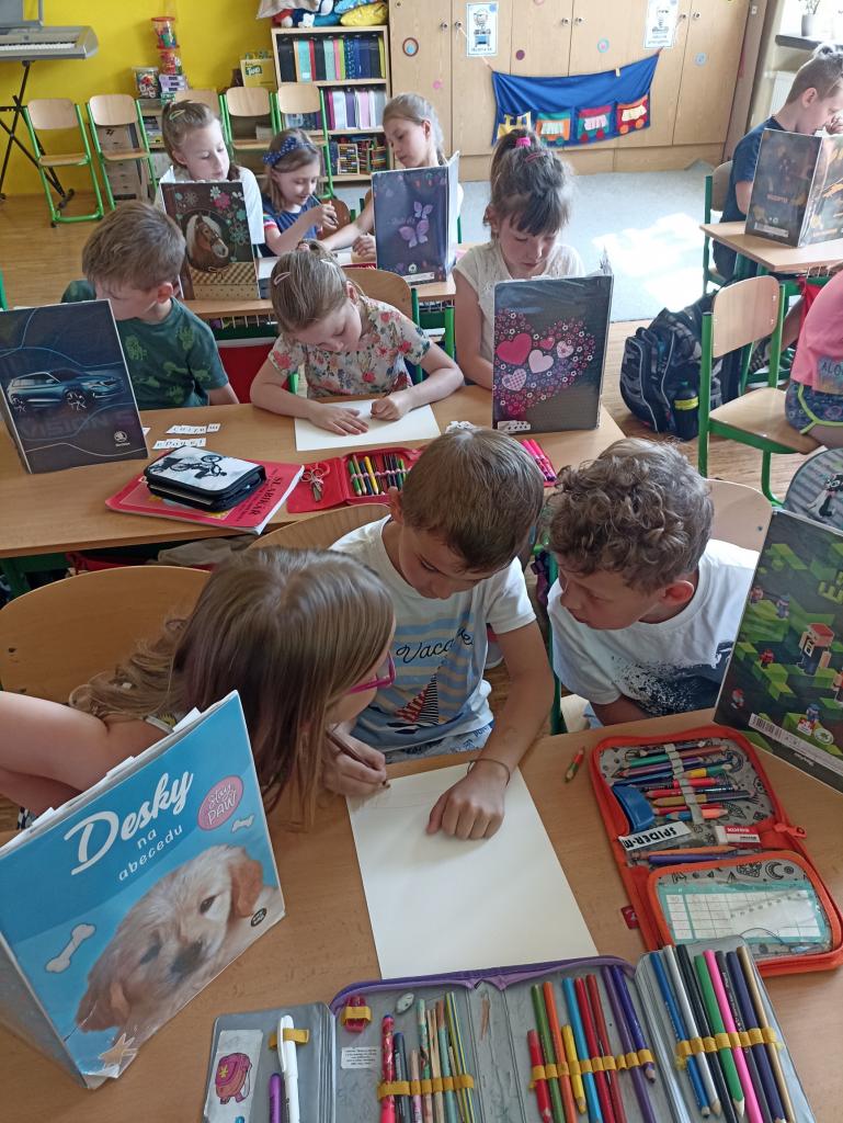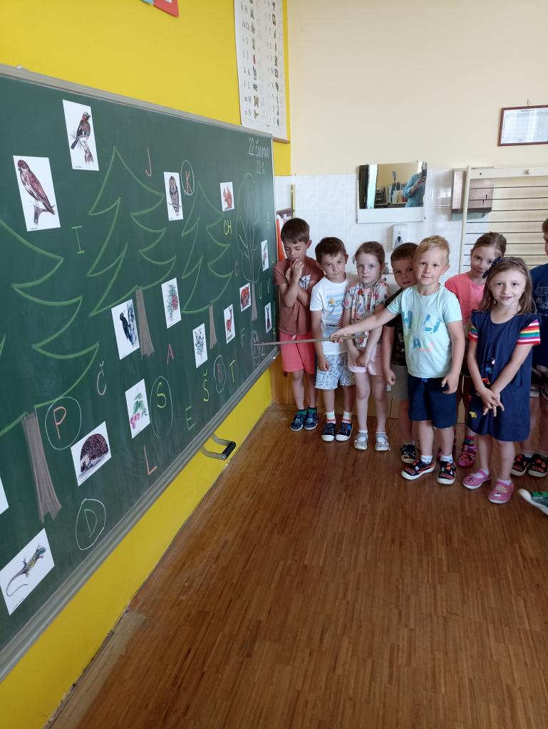 Ve čtvrtek 22. 6. jsme měli v první třídě vzácnou návštěvu. Přišly se na nás podívat děti, které příští rok nastoupí do 1. třídy. Ukázali jsme jim, jak umíme číst, skládat písmenka a také jsme si společně zatancovali a zazpívali. Ve všem nám pomáhali a už se na ně těšíme, jak nastoupí k nám do školy. Po vyučovací hodině nás čekala pohádková stezka, kterou si pro nás připravila paní asistentka ze školky paní Eliška Dorničáková a společně s naší paní učitelkou a s paními učitelkami ze školky jsme si stezku prošli. Za splněné úkoly nás čekala sladká odměna a pěkný pocit z prožitého dopoledne.
