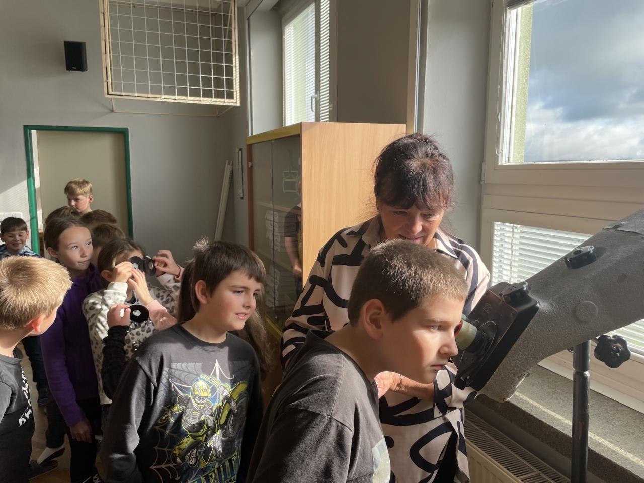 Během dnešního poledne jsme měli možnost pozorovat částečné zatmění Slunce. I když se nám Slunce občas schovalo za nějaký ten mrak, přece jen se většině žáků podařilo tento vzácný jev vidět. Další částečné zatmění Slunce budeme moci pozorovat až v březnu 2025.