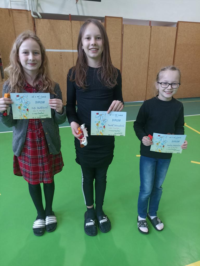 Všem přednášejícím patří velká pochvala za moc pěknou recitaci a vítězům gratulace. 1. 3. 2023 se děti, které se umístily na 1. a 2. místě ve druhé a třetí kategorii, zúčastní okrskového kola recitační soutěže. Přejeme jim hodně štěstí.