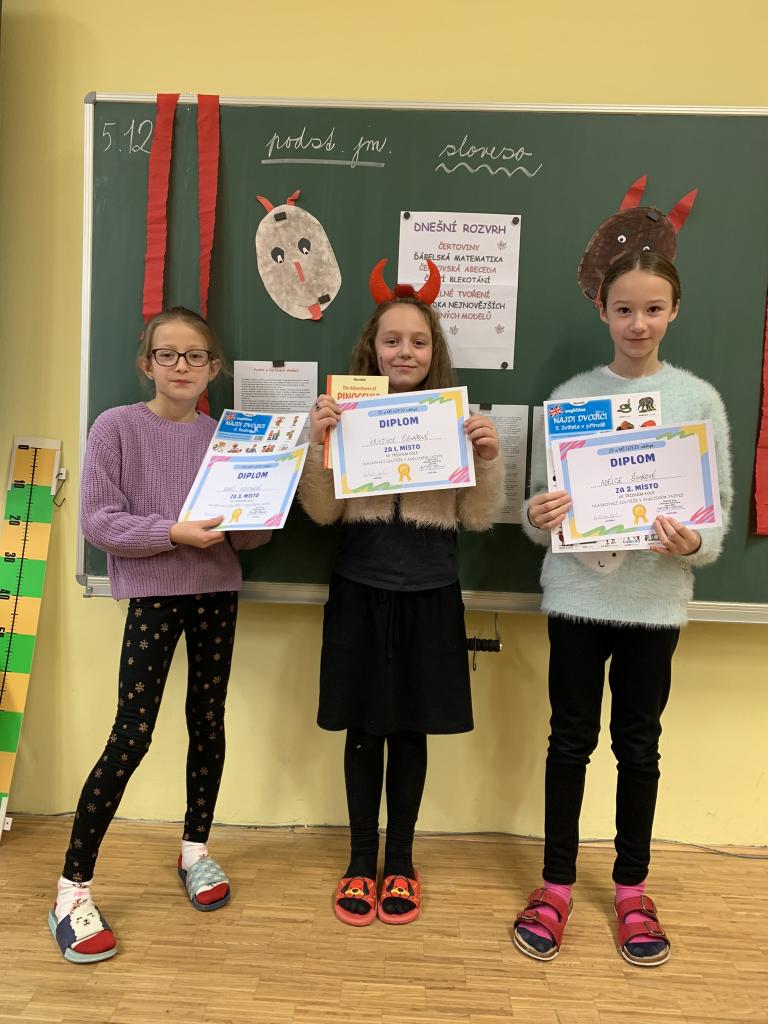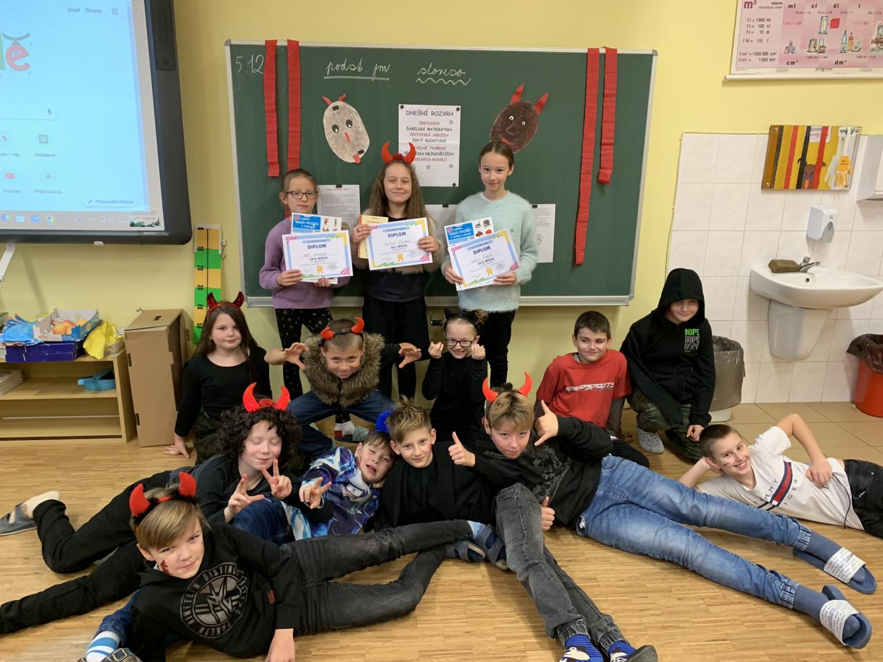 Žáci 4. ročníku se zúčastnili hláskovací soutěže v angličtině - tzv. Spelling Bee. V pouhých 60 sekundách museli anglicky vyhláskovat co nejvíce slov, a to bez jediné chybičky. Konkurence byla velká, ale žáci se s ní poprali, jak nejlíp uměli. Nejúspěšnější byla Kristínka Čižnárová, Adélka Šimková a Barča Kantorová. Vítězkám gratulujeme!